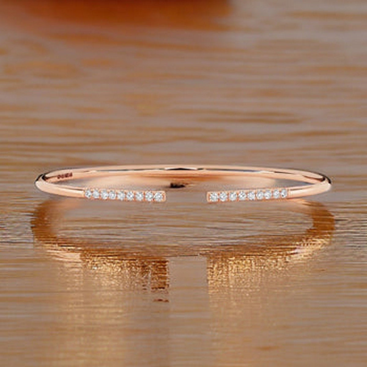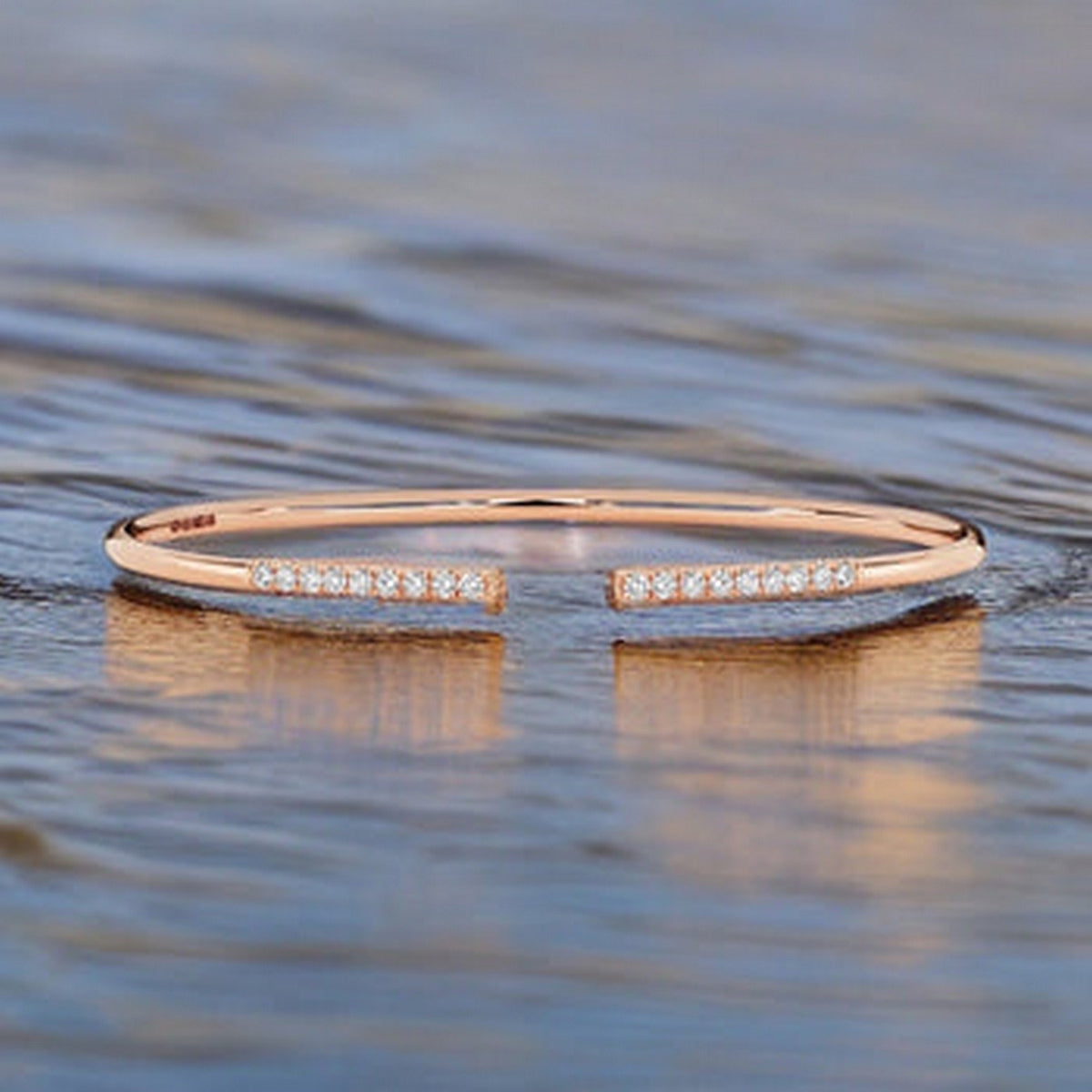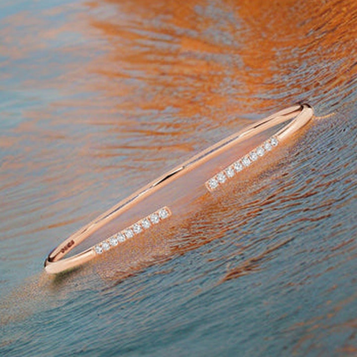 Diamond Open Bangle In 18Ct Rose Gold Stackable