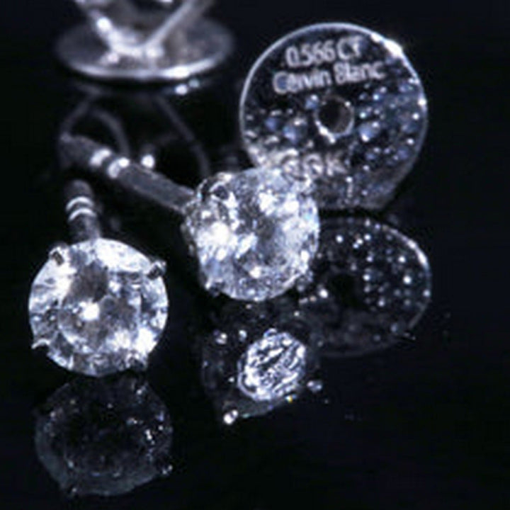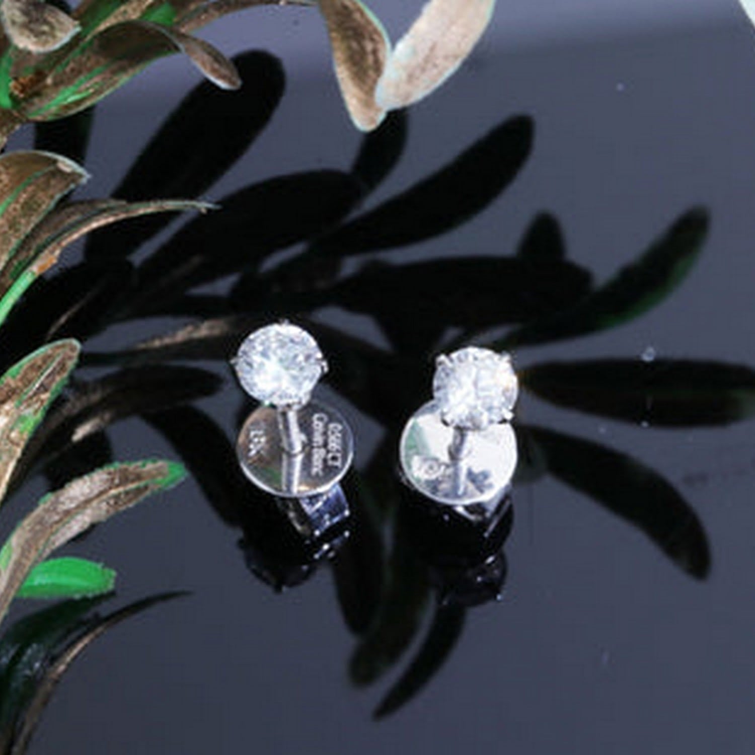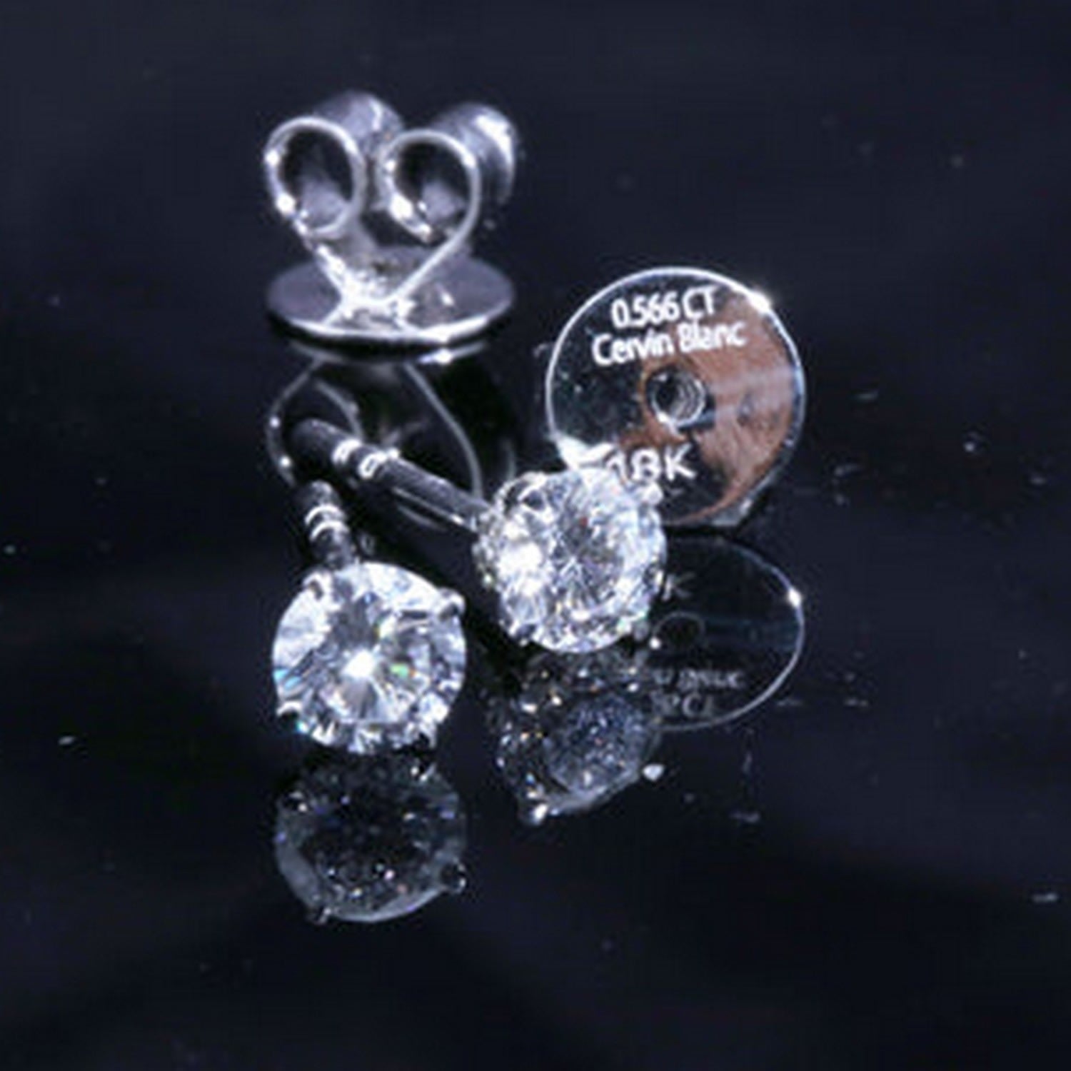 These dangle earrings are crafted from 18ct white gold and feature solitaire diamonds with a total of 0.57ct. The diamonds have a G color and a VS clarity.
