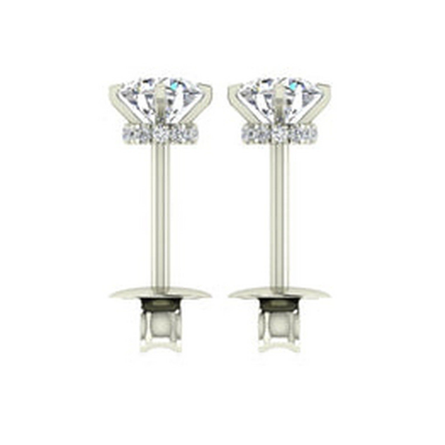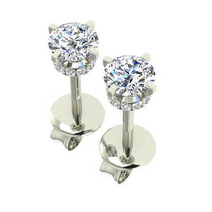 White Gold Solitaire Diamond Earrings With Hidden Halo