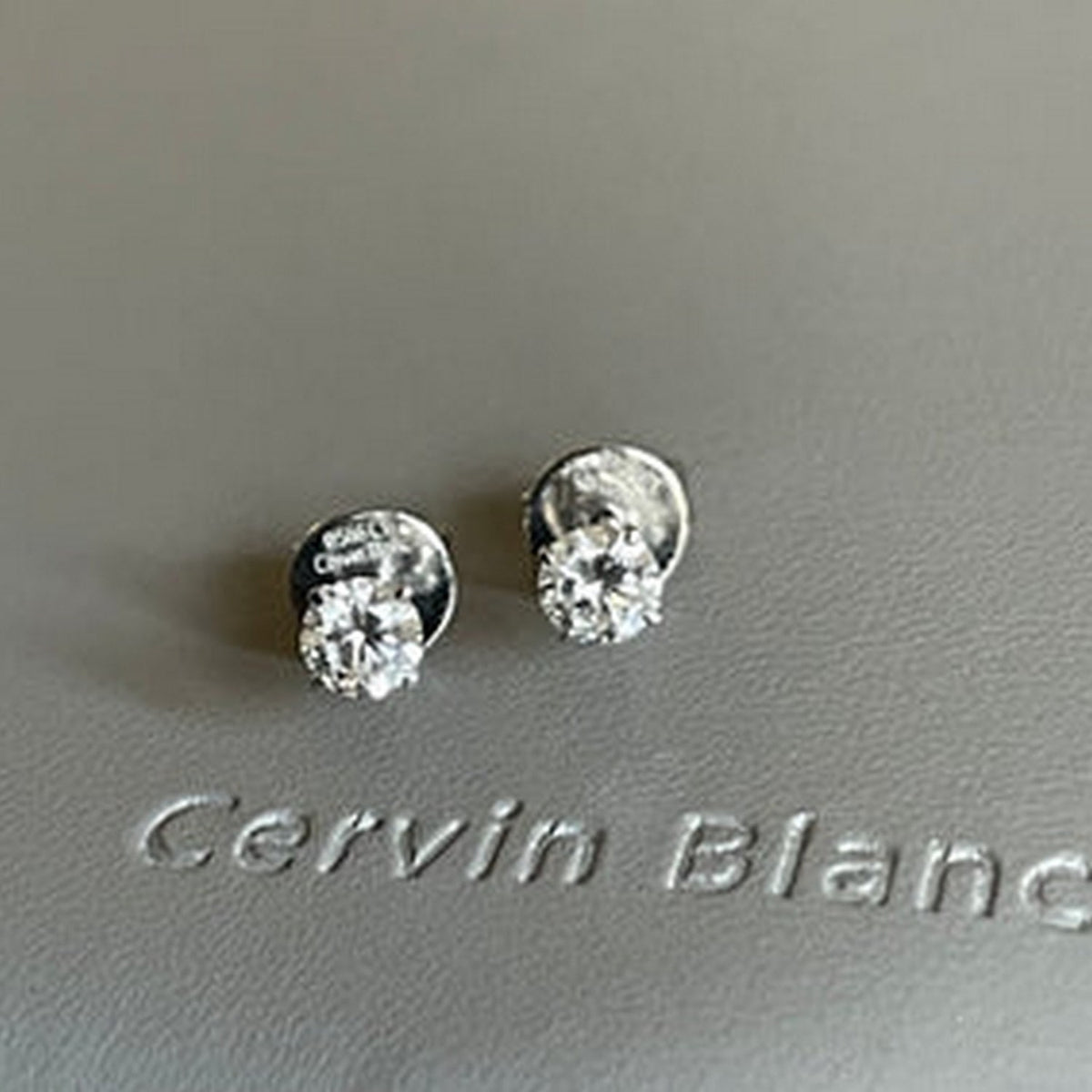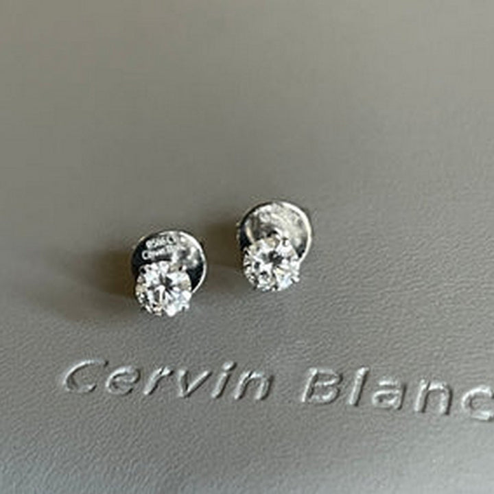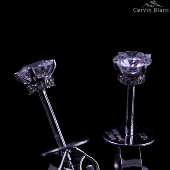 These White Gold Solitaire Diamond Earrings With Hidden Halo by Cervin Blanc are a luxurious and stunning accessory. These dangle earrings feature solitaire diamonds with a total of 0.57ct. The main solitaire is 0.25ct, and the combined hidden halo is 0.07ct. Crafted from 18ct white gold, these earrings are a timeless and elegant piece.