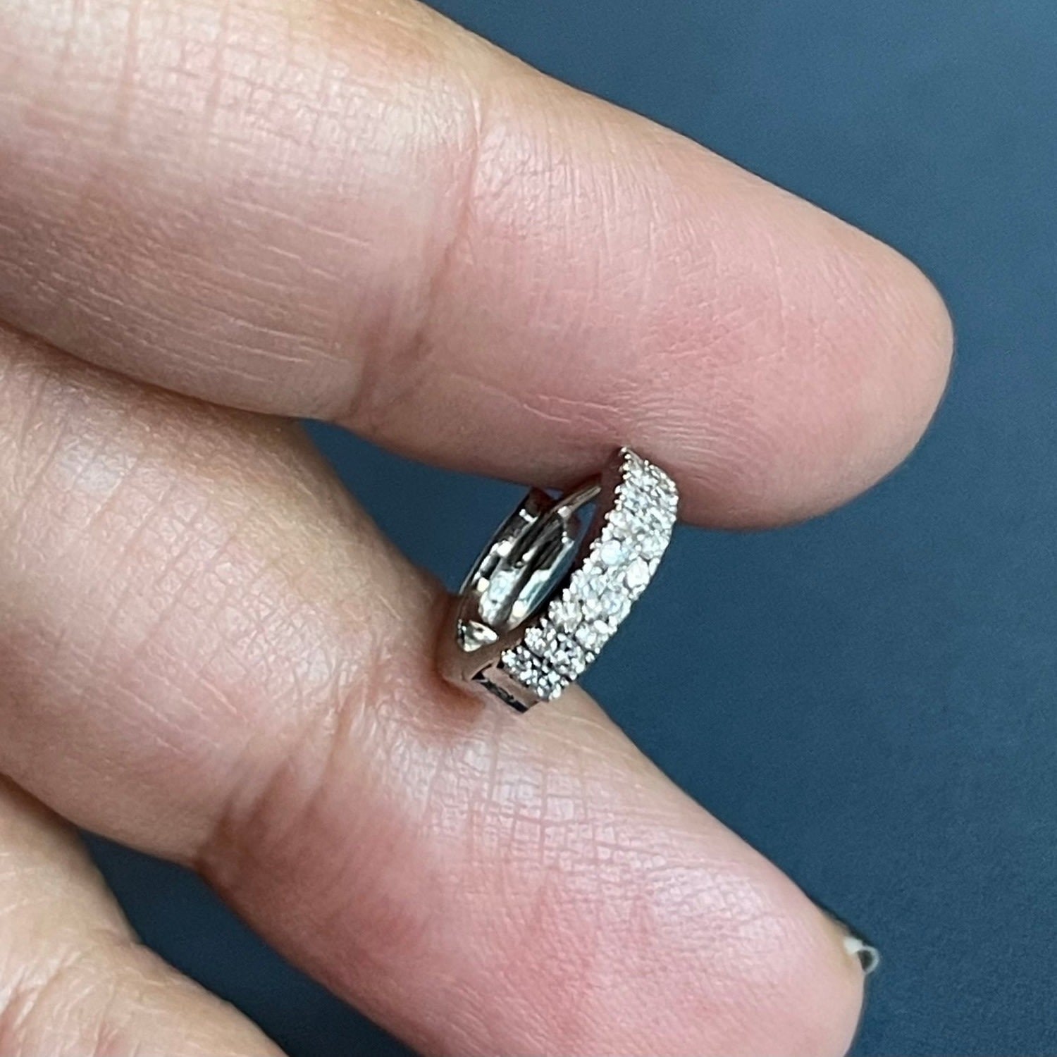 Diamond Cartilage Hoop Earring In White Gold Piercing Double Row