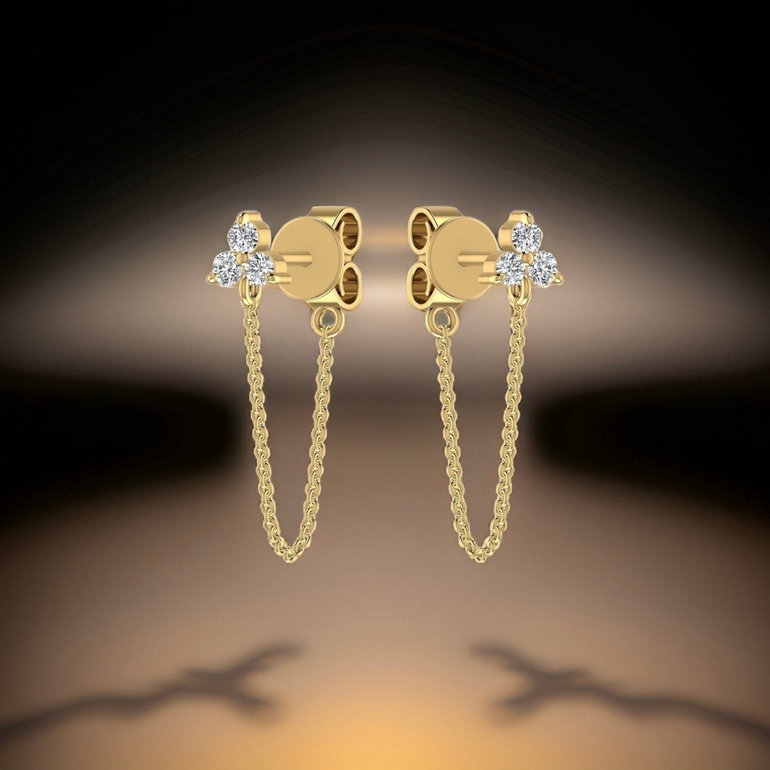 Diamond Earrings In Yellow Gold Trilogy Chain Wrap Around Drop