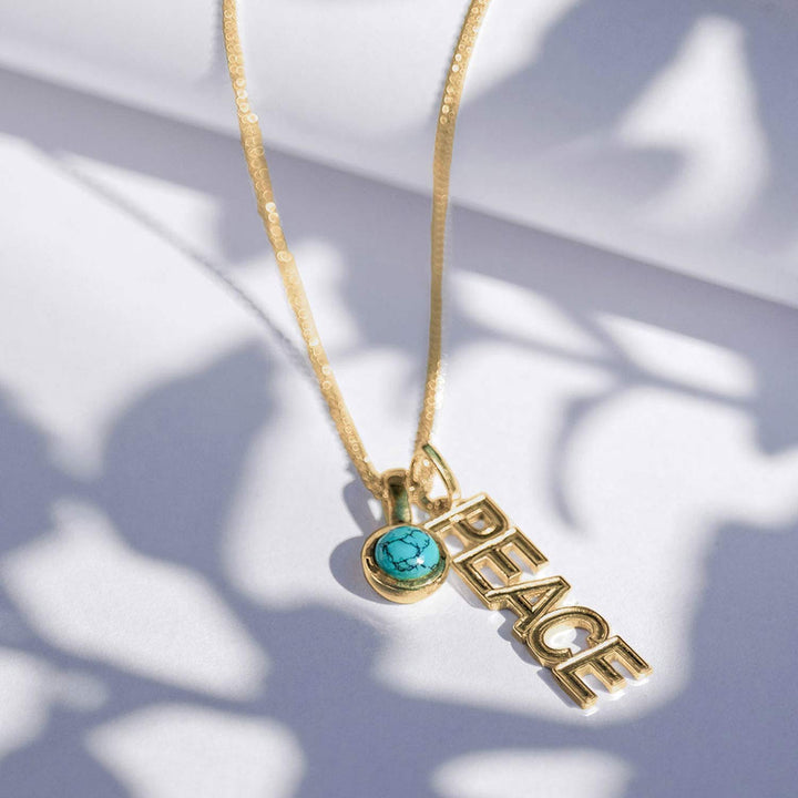 Peace Rocks Gold Vermeil Necklace With Turquoise Birthstone Charm
