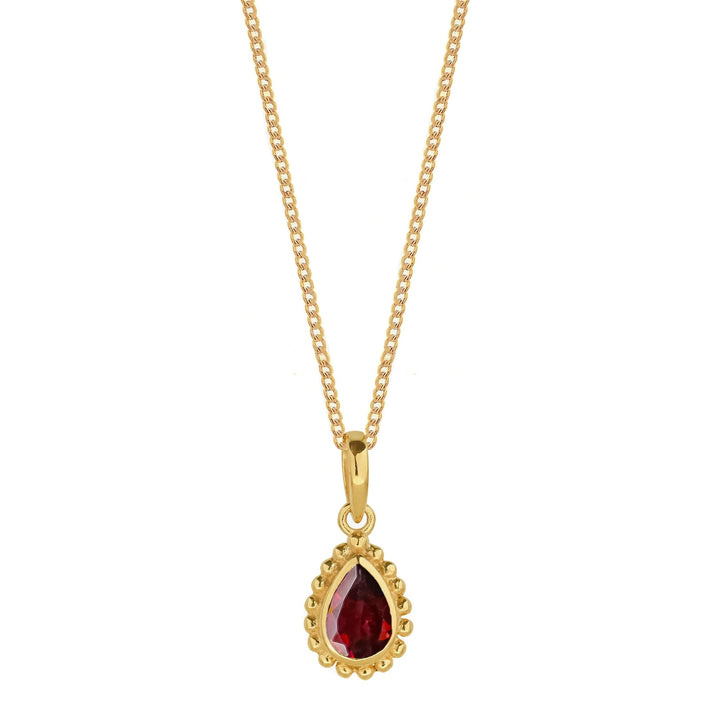 The January Birthstone Gold Necklace by Charlotte's Web Jewellery is a classic and elegant piece. It features a deep red garnet, January's birthstone, set in a handcrafted gold Rawa setting. The garnet is said to inspire love, strength, and security, making this necklace a meaningful accessory that brings rich, modern elegance to a timeless design.