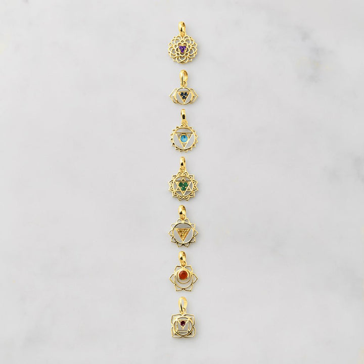 This Sacral Chakra Gold Necklace - Carnelian by Charlotte's Web Jewellery is a meaningful necklace that inspires pleasure, enjoyment, and creativity. It features a lotus leaf-inspired charm bejeweled with an orange carnelian gemstone, revered for its positive energies. This piece is gold-plated on recycled brass, making it a stylish and spiritual accessory.