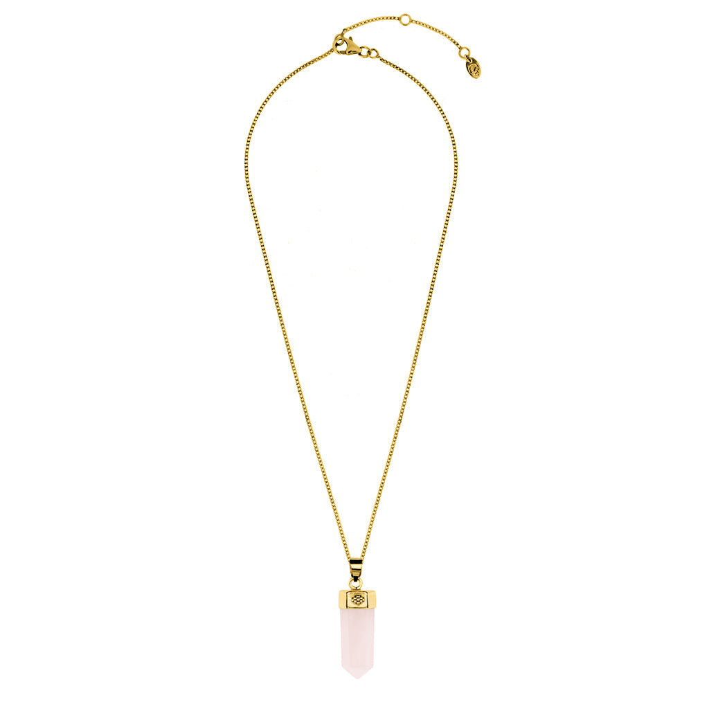 This necklace is handmade from gold vermeil on sterling silver and features a rose quartz crystal.