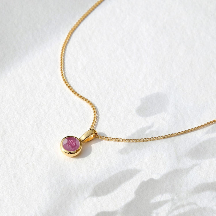 July Birthstone Charm Gold Vermeil Necklace - Ruby