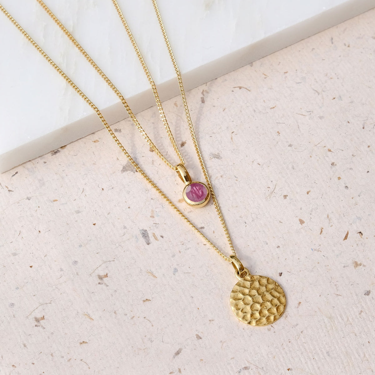 The July Birthstone Charm Gold Vermeil Necklace by Charlotte's Web Jewellery is an elegant and personalized piece featuring a ruby, the birthstone for July. The ruby, often called the "King of Gems," has been the stone of choice for royalty and signifies eternal love and passion. This necklace is perfect for celebrating a birth month or attracting prosperity, making it a beautiful and meaningful gift for yourself or a loved one.