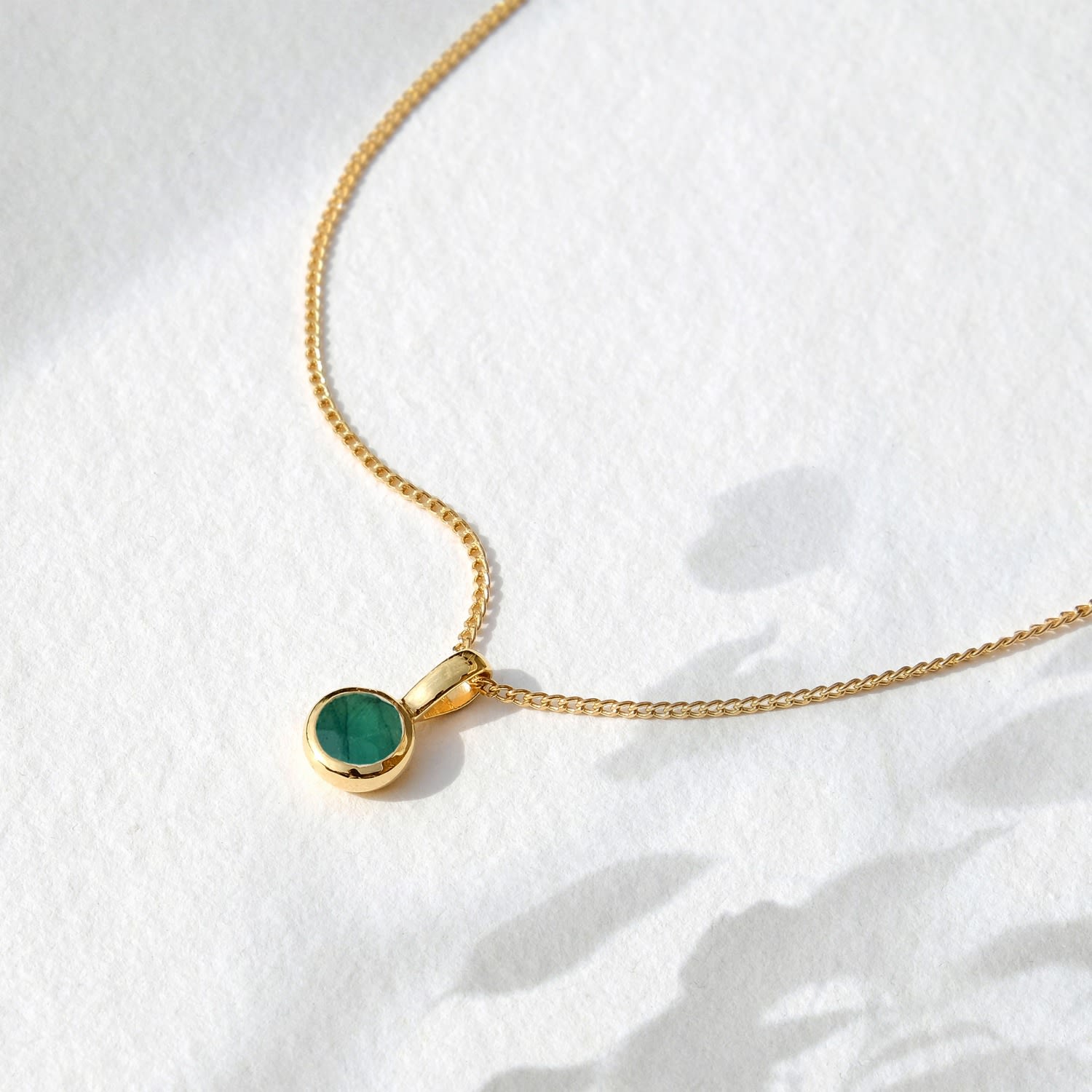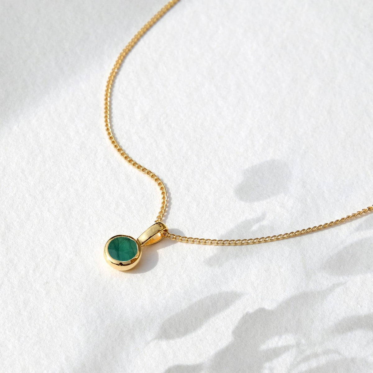 This handcrafted necklace features a cut emerald (5mm) and is made from gold vermeil on sterling silver. The necklace is also available in sterling silver.