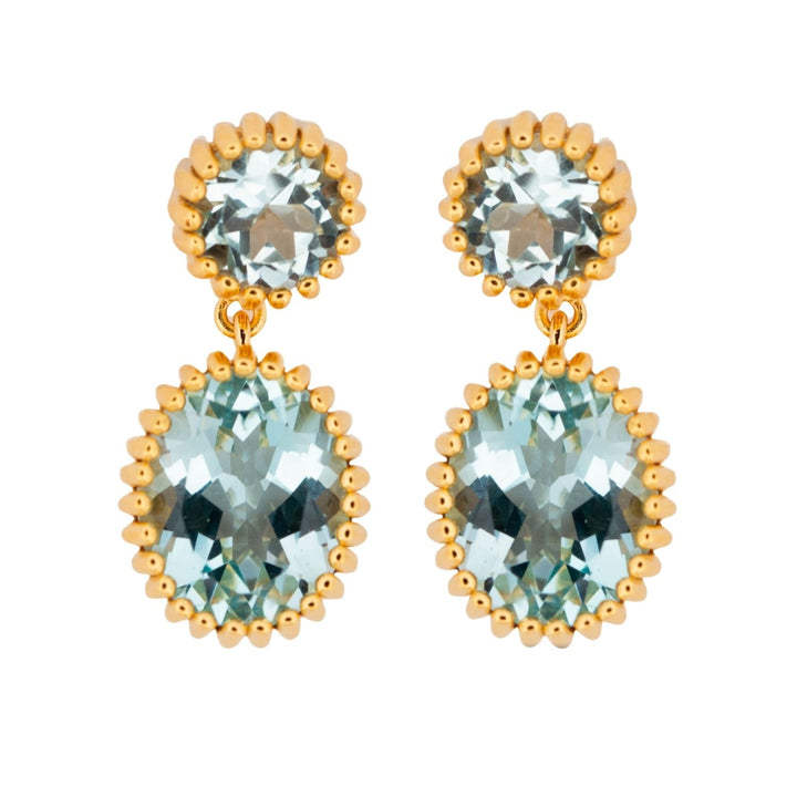 These earrings are made from sterling silver and 18ct gold vermeil with sky blue topaz gemstones.