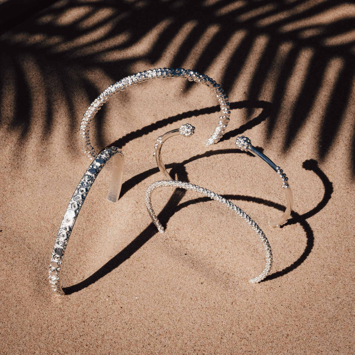 This Open Barnacle Bangle by Dainty London is a celebration of the forces of nature, capturing the elegant simplicity of the Cornish coast. Crafted from recycled sterling silver, its sleek and open design features a unique granulation technique that mimics the texture of the ocean's landscape. This one-size-fits-all bangle is perfect for wearing alone as a statement piece or stacking with other jewelry. It symbolizes a connection to the natural world and a commitment to sustainable craftsmanship.