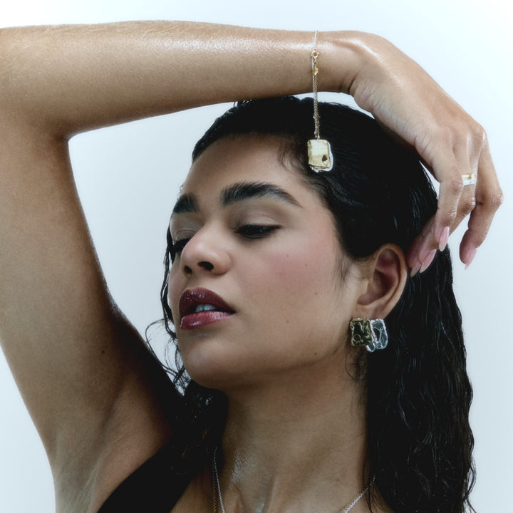 These Abstract Molten Soulmate Earrings by De Roms are a statement piece that embodies a deep, philosophical concept. Inspired by Plato's idea of soulmates, their abstract, molten design reflects the universal quest for wholeness and connection. These earrings are more than just an accessory; they are a reminder of the shared desire for soulful connections and a beautiful celebration of the journey of self-discovery. Their unique form and gold finish make them a powerful and elegant statement.