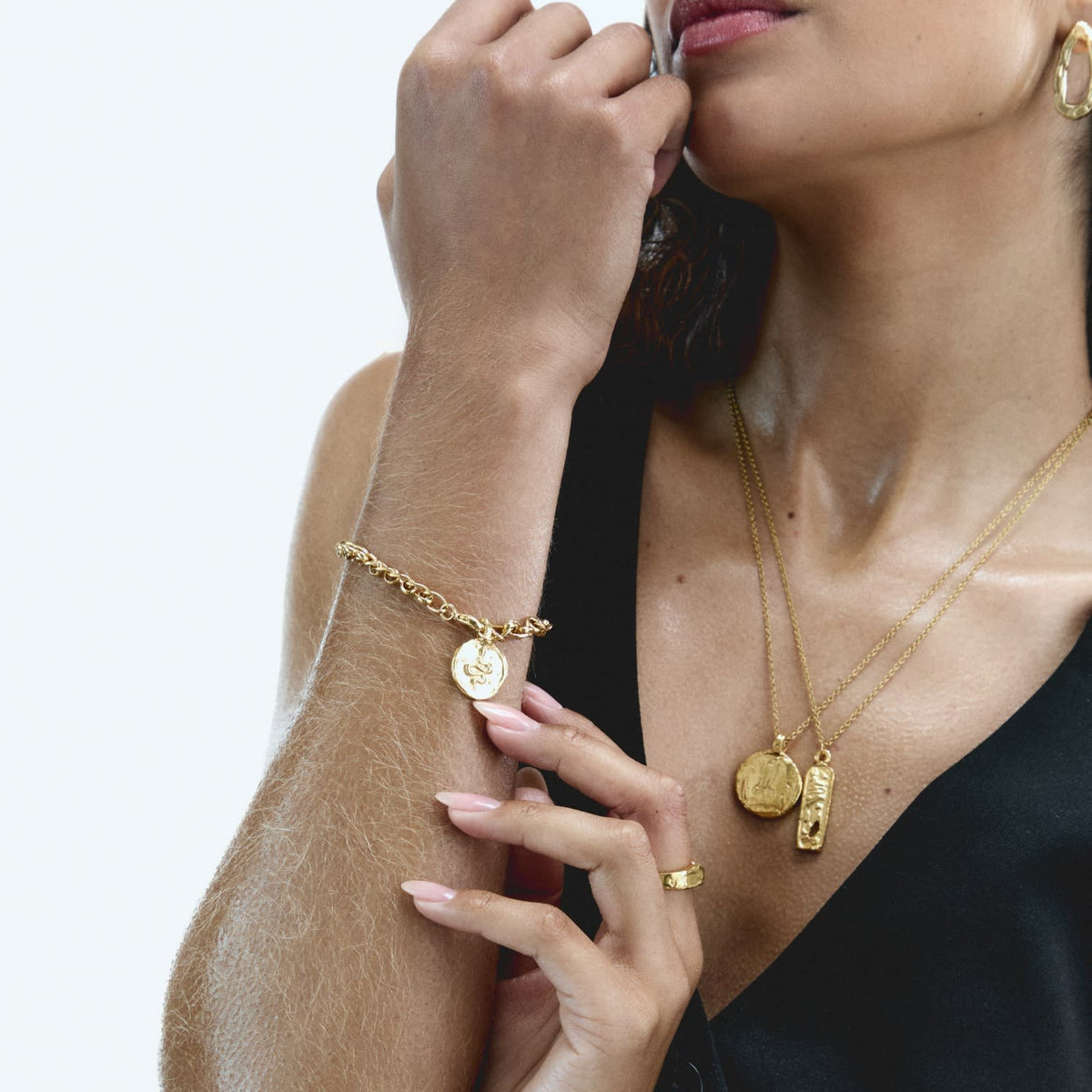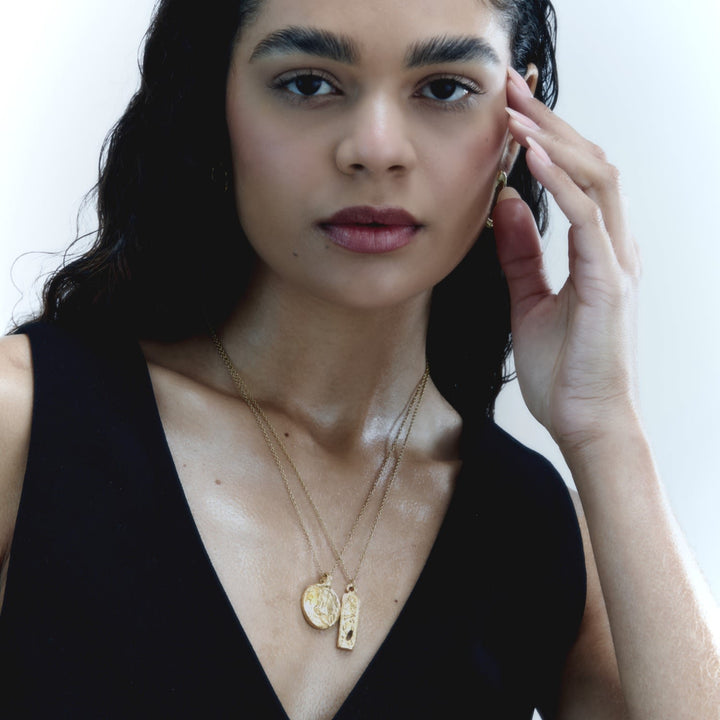 Crafted from 100% recycled silver and 24-karat gold vermeil, this pendant hangs on a 45cm trace chain.