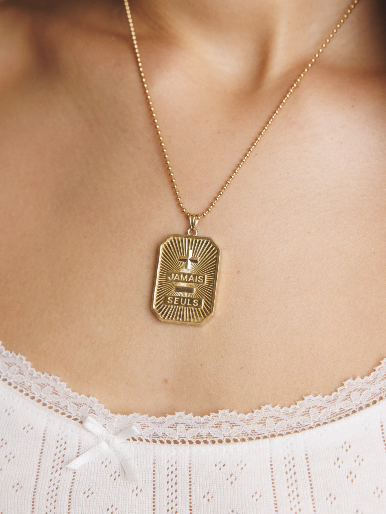 Jamais Seuls Dog Tag - Gold Vermeil