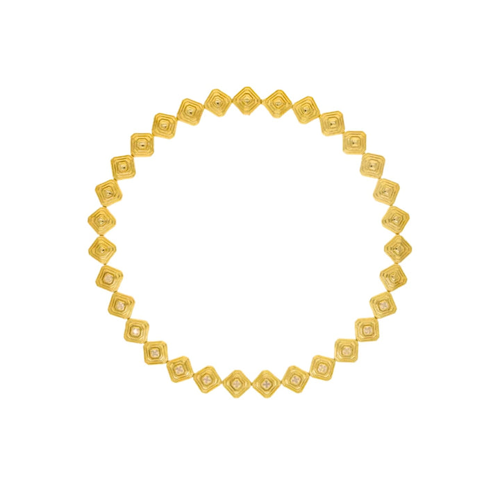 This Deco Gold Necklace by Decolet the Label is a captivating geometric piece with a nod to Art Deco design. The series of meticulously crafted hexagonal links, each with a shimmering cubic zirconia stone, exudes timeless allure. This necklace is perfect for transitioning seamlessly from day to night.