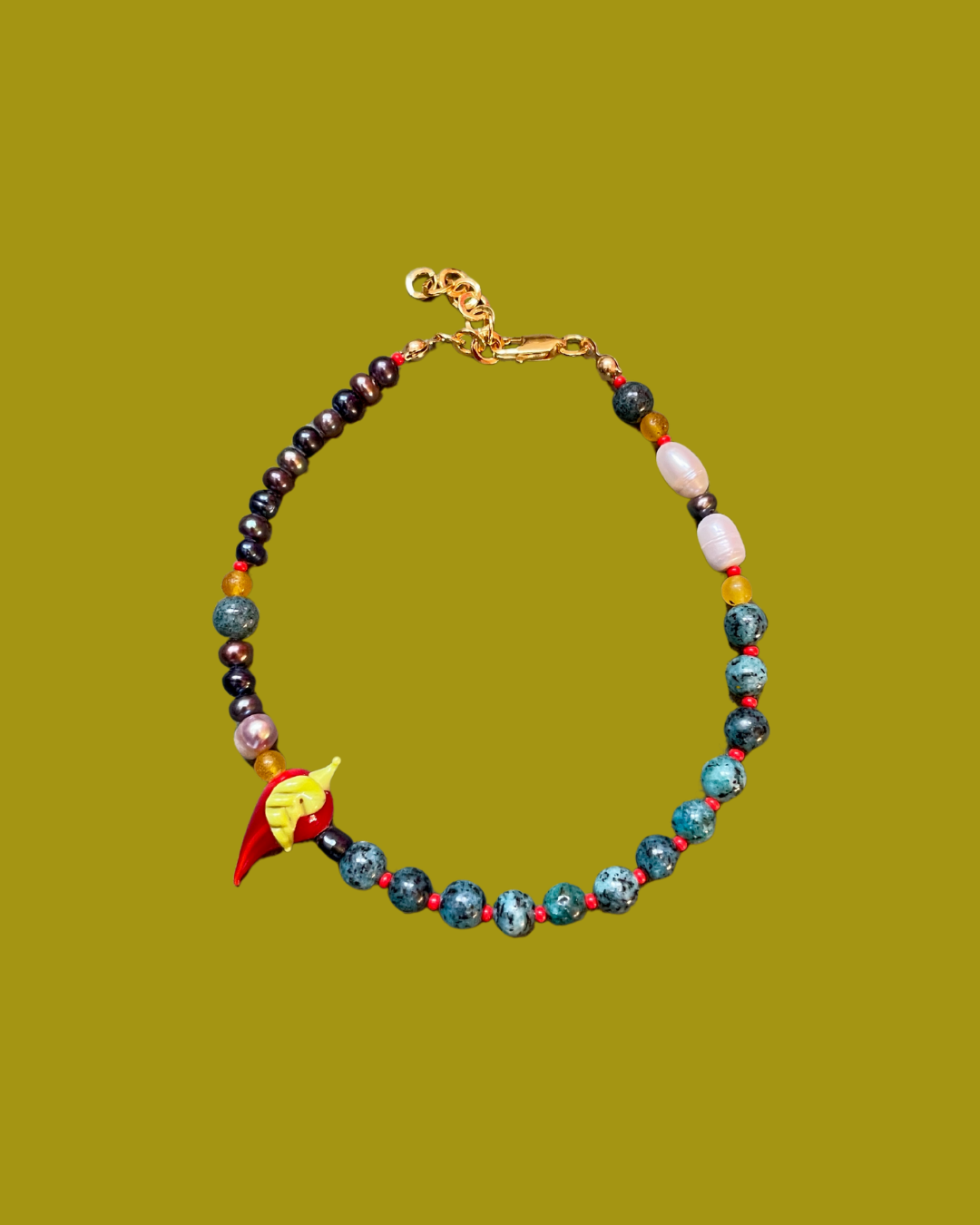 Spice Up – Beaded Anklet With Murano Glass & Black Pearl