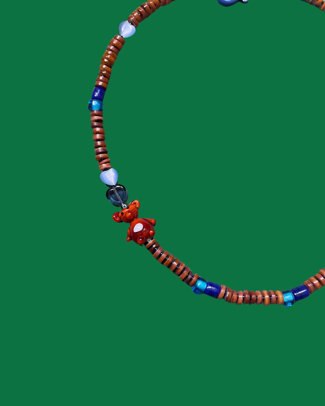 Nineties Kid – Beaded Necklace With Glass Teddy Bear Charm