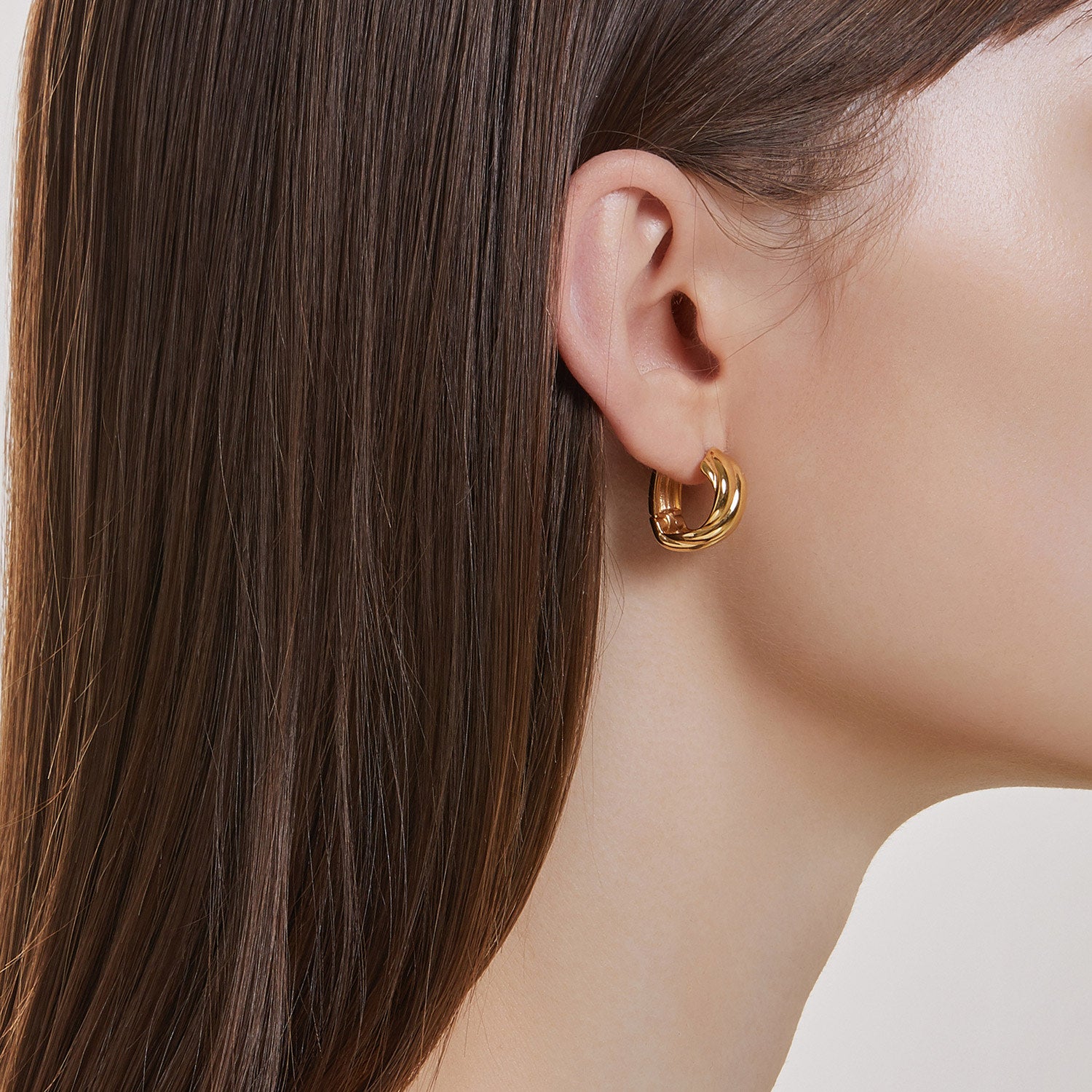 These Sélection. D Bold Brass Hoop Earring by Didier Dubot are a timeless and voluminous upgrade. The signature letter 'D' is reimagined as hoops with a striking ridged texture. Crafted in yellow gold-plated brass, these hoops are perfect for stacking or wearing solo, adding a touch of bold elegance to your look.