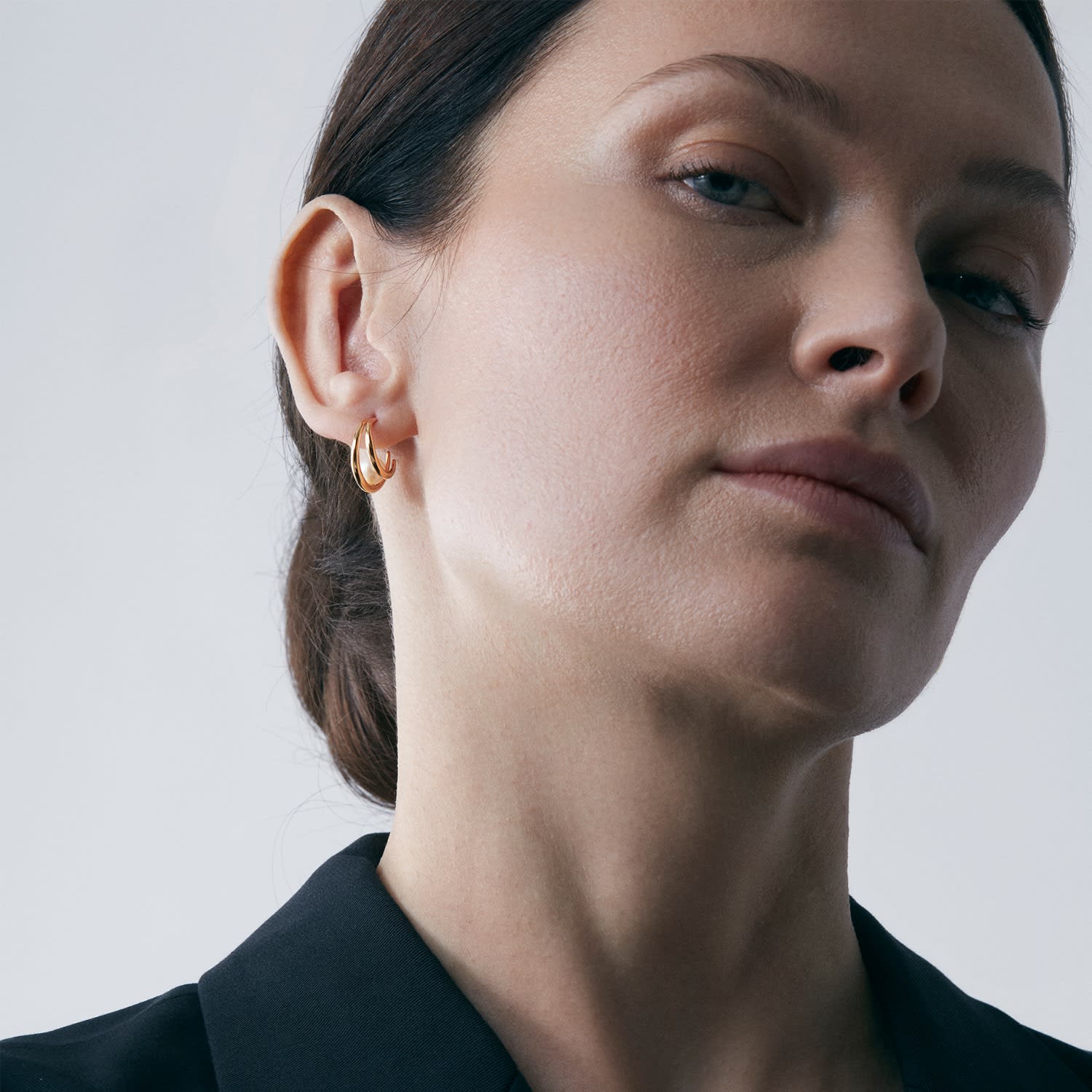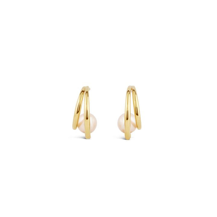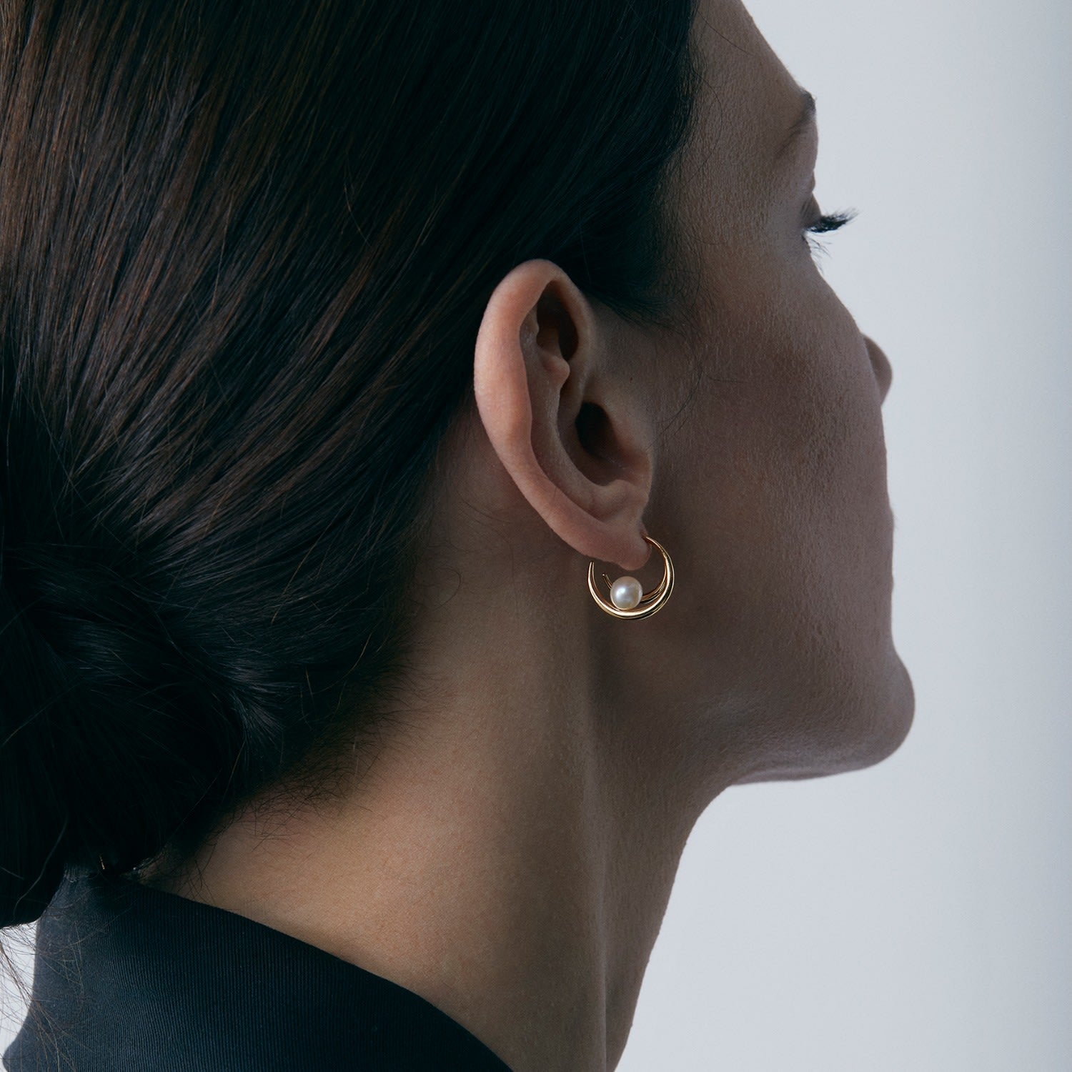 These double hoops are crafted from recycled 22k gold vermeil and feature a freshwater pearl.