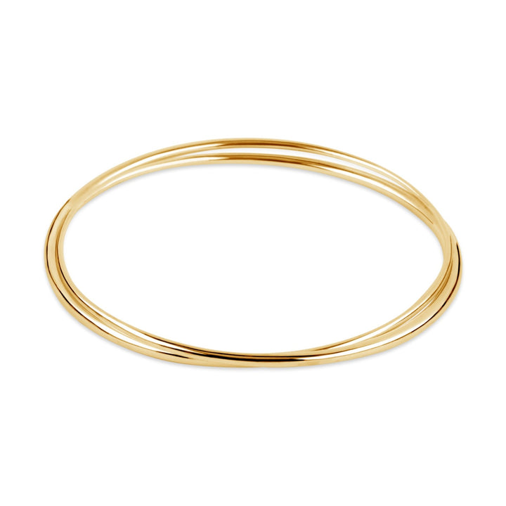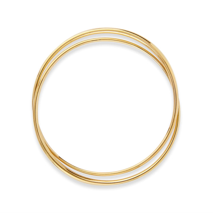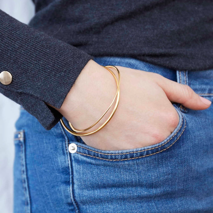 This Signature Double Bangle by Dinny Hall is a simple yet sculptural accessory. The two interlinked bands, handmade from recycled gold vermeil, celebrate a beautifully simple and perfectly weighted design. This bangle is a timeless and elegant piece that will add a touch of refined sophistication to your wrist.