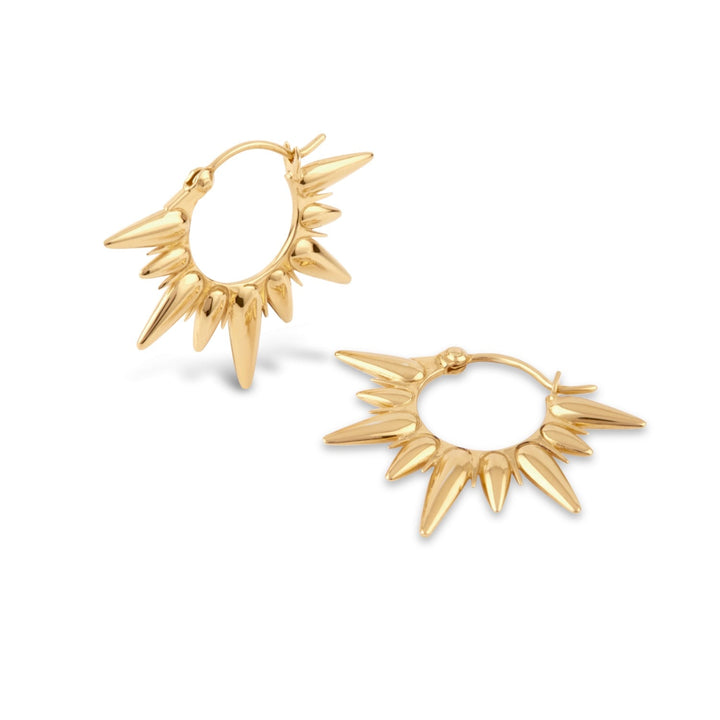 These Sunbeam Half Sun Click Hoops by Dinny Hall are an elegant and symbolic accessory. An homage to the sun, these hoops feature a painterly golden light of a half sun set into a comfortable click hoop. Made from 100% recycled 22k yellow gold vermeil, these earrings are a beautiful celebration of light and a stylish addition to your collection.