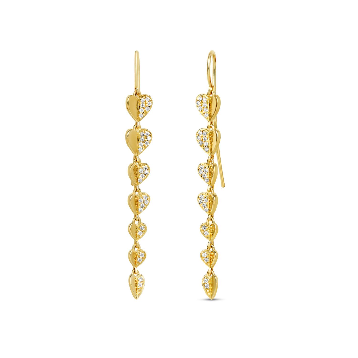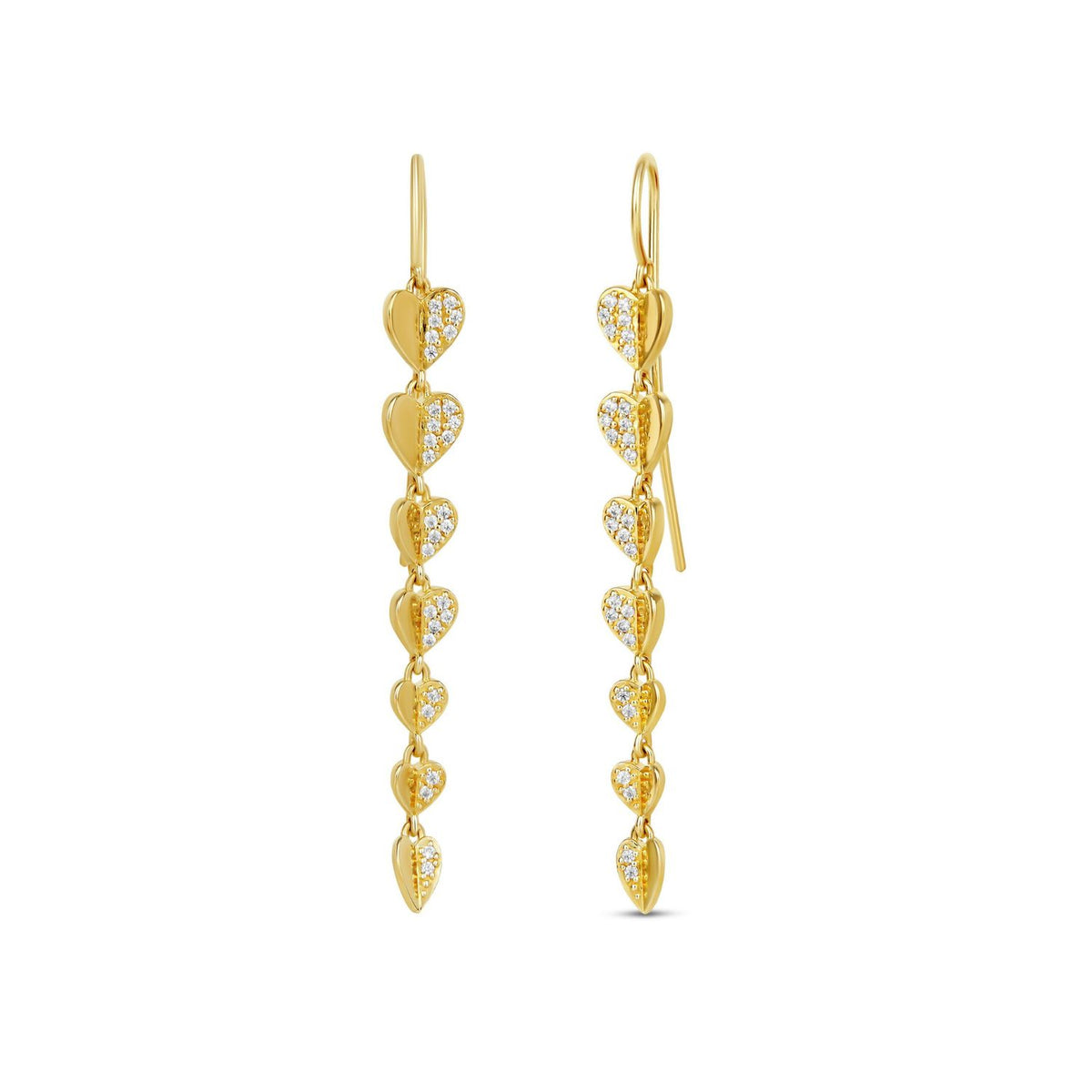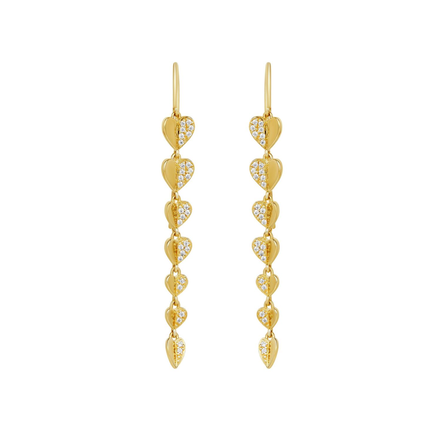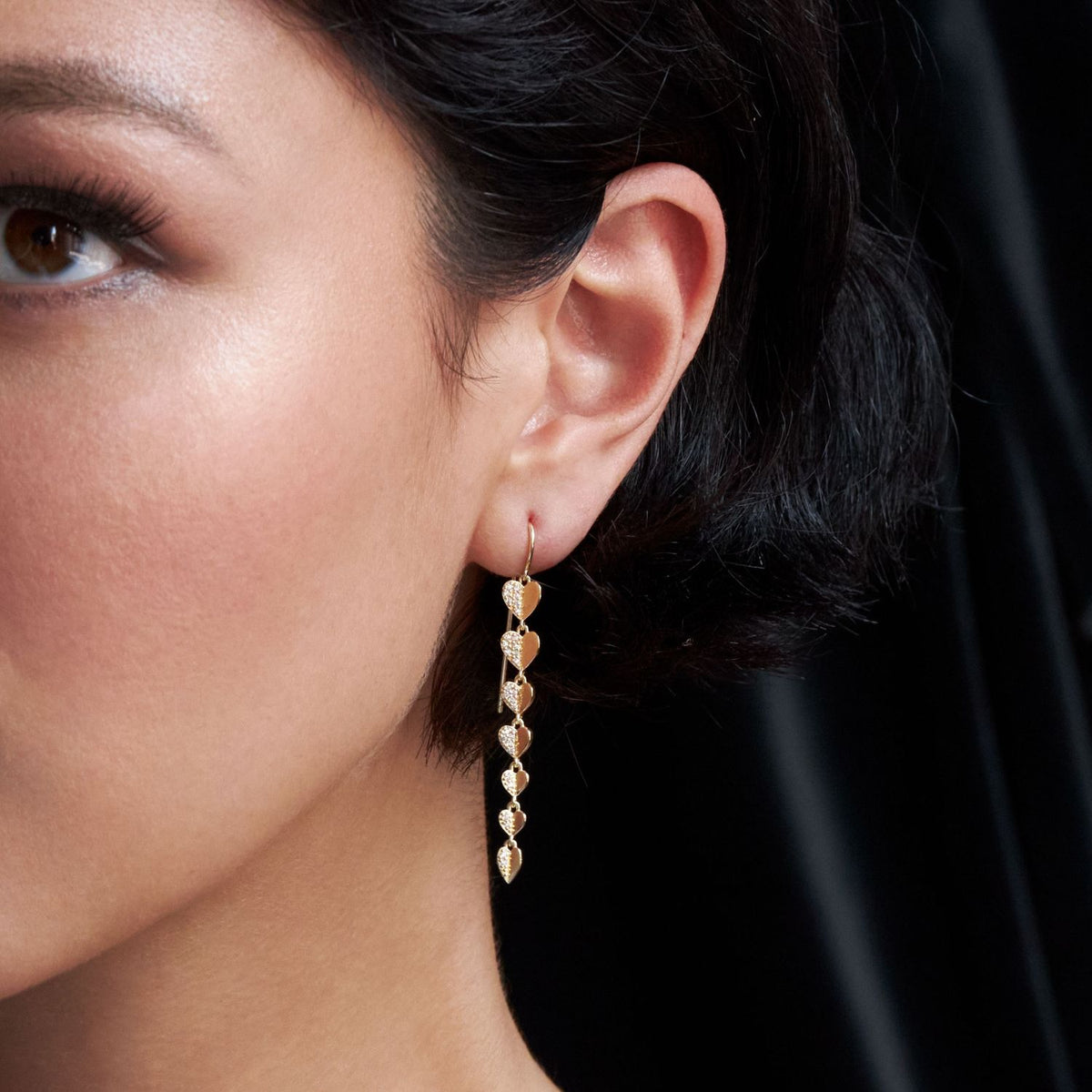 These Folded Heart Lab-Created Diamond Column Drops by Dinny Hall are a head-turning and playful accessory. Crafted in 9k yellow gold and set with lab-created diamonds, these earrings flow with every movement. The folded heart design adds a unique and charming touch, making them a beautiful statement piece.