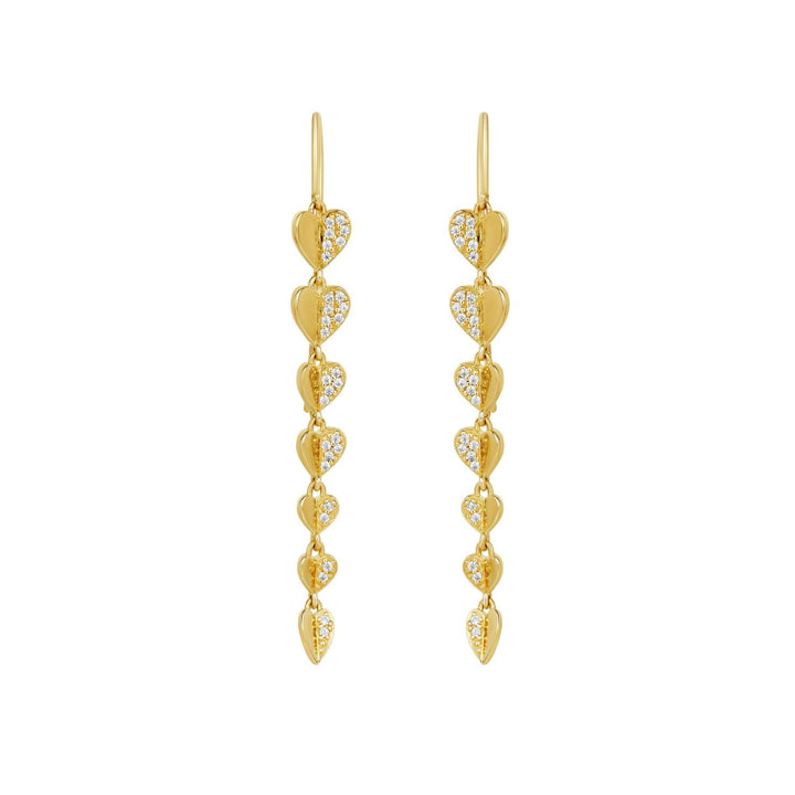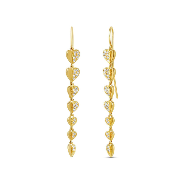 These drop earrings are crafted from 9k yellow gold and are set with lab-created diamonds. To prevent surface scratching, store them in their jewelry box or pouch, preferably separately from other pieces.