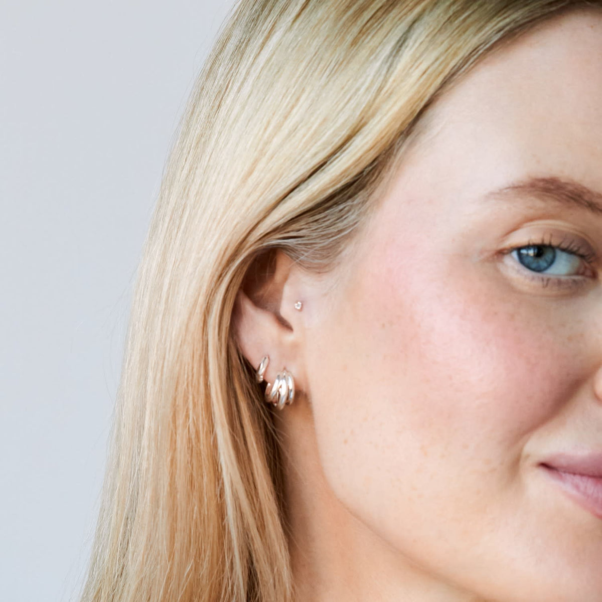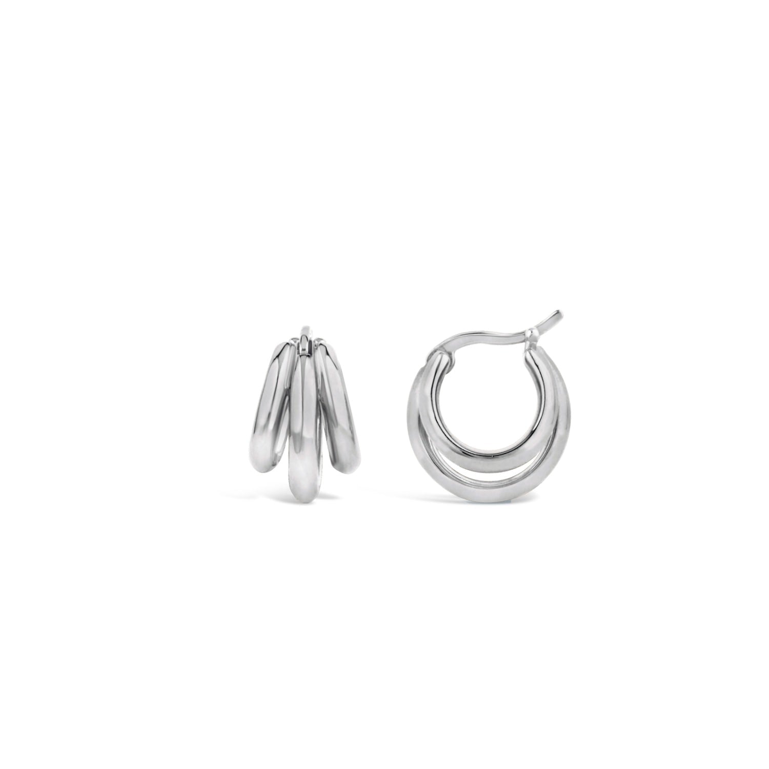 These huggie earrings feature a trio of chunky hoops made from recycled sterling silver. They are certified in accordance with the Hallmarking Act 1973.