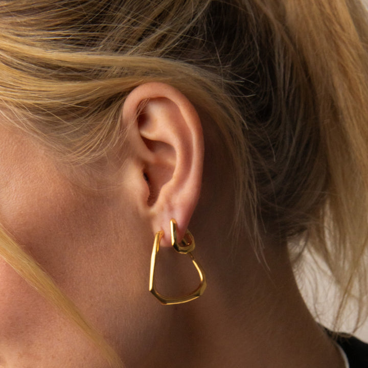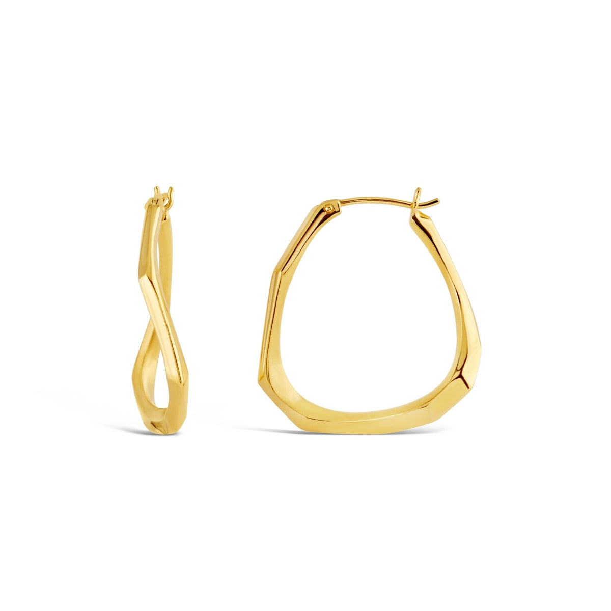 These medium hoops are hand-carved in 22k yellow gold vermeil and are cast from 100% recycled metals. They have a sweeping, sweeping curve and a faceted finish.