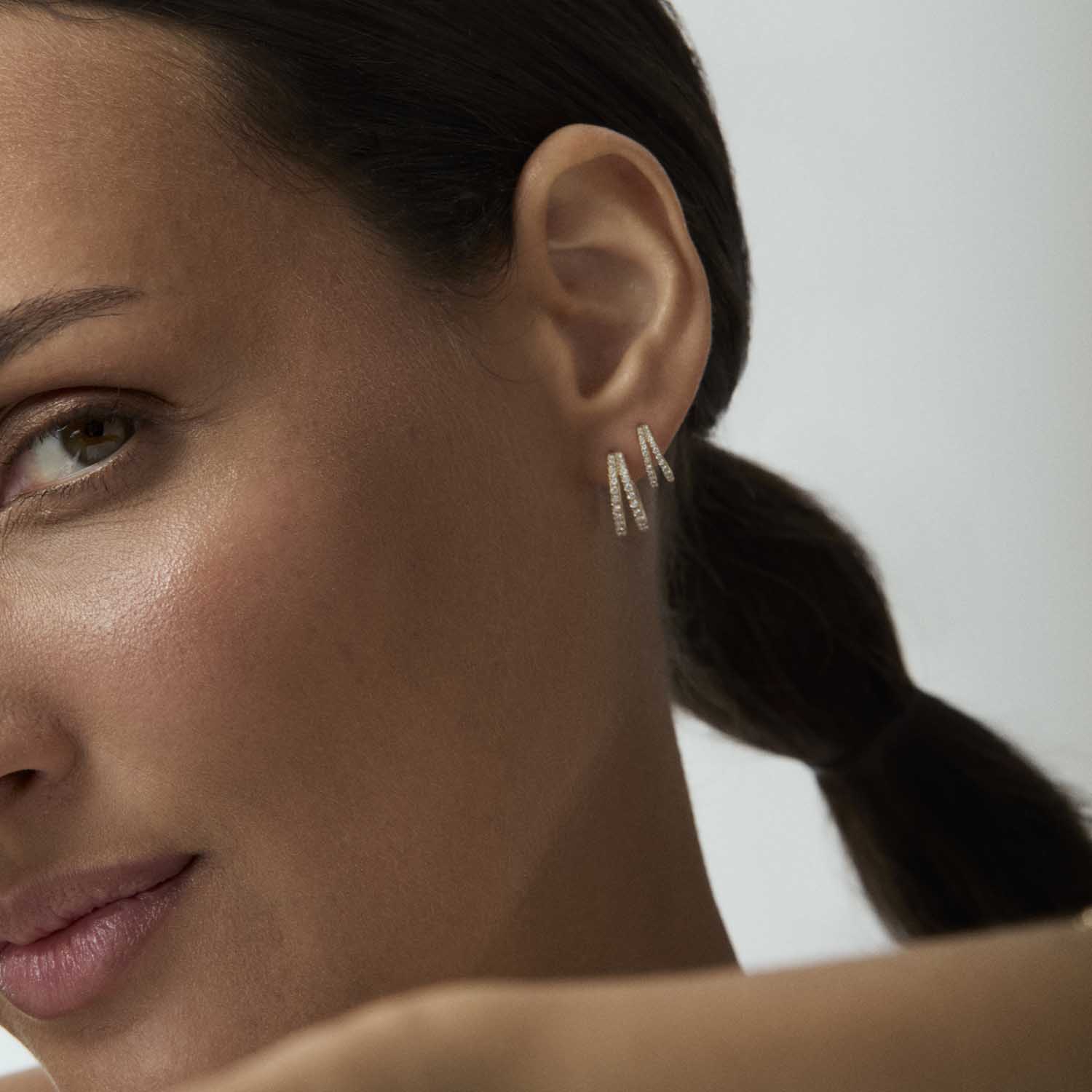 These Signature Duo Small Lab-Created Diamond Huggie Hoops by Dinny Hall are endlessly wearable with a subtle sparkle. These effortless essentials are made to be lived in, a perfect way to elevate your everyday look. The tiniest details make the biggest impact, with 32 twinkling lab-created diamonds that add a touch of brilliance.
