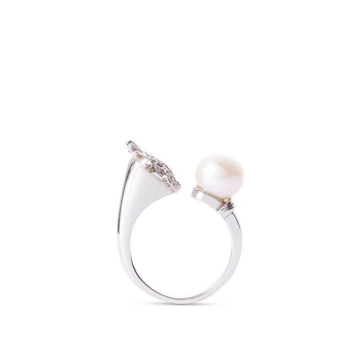 The Ìdólá Pearl Ring by Dola is a beautiful and luxurious ring with a unique design. Inspired by African masks, it features the iconic DOLA mask design with sapphire eyes. Crafted with precision and plated in platinum-plated silver, this ring adds a touch of mystique and cultural richness to your style.