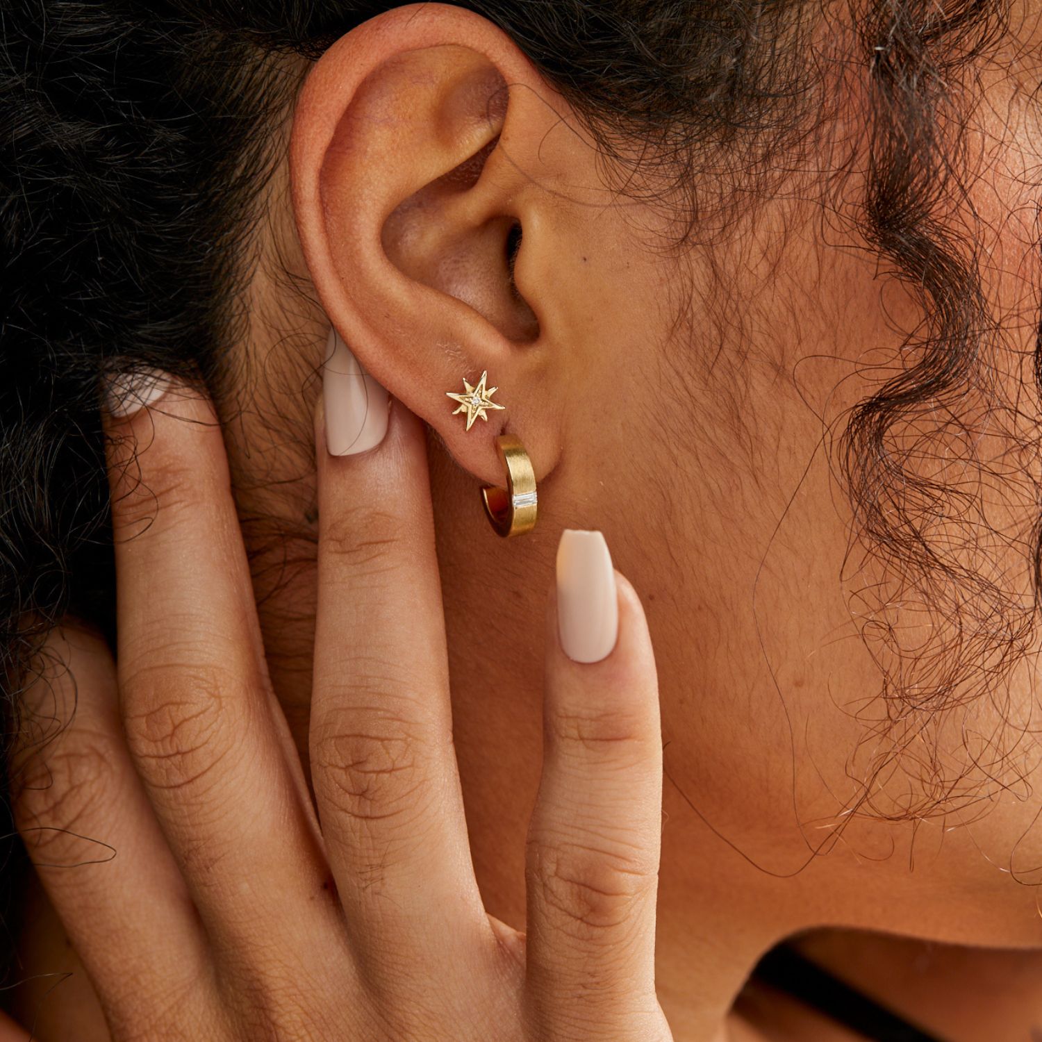 These Porta Hoop Earrings by Dolcetto Designs are a sleek and classic design. The hoops, which embody transition and new beginnings, are made from solid recycled 9k yellow gold and feature baguette-cut lab-grown diamonds. They are bold enough to be worn on their own or as part of a stack.