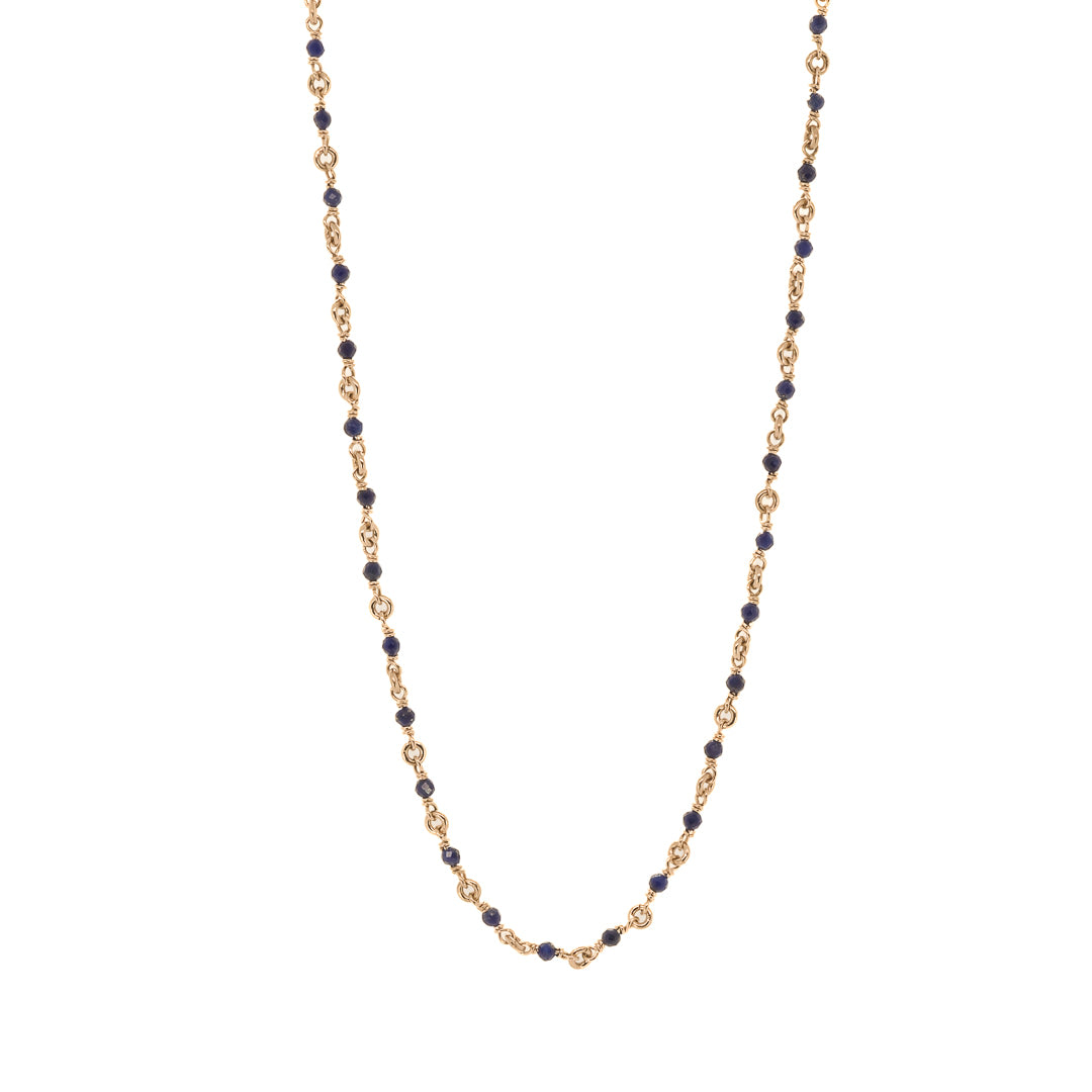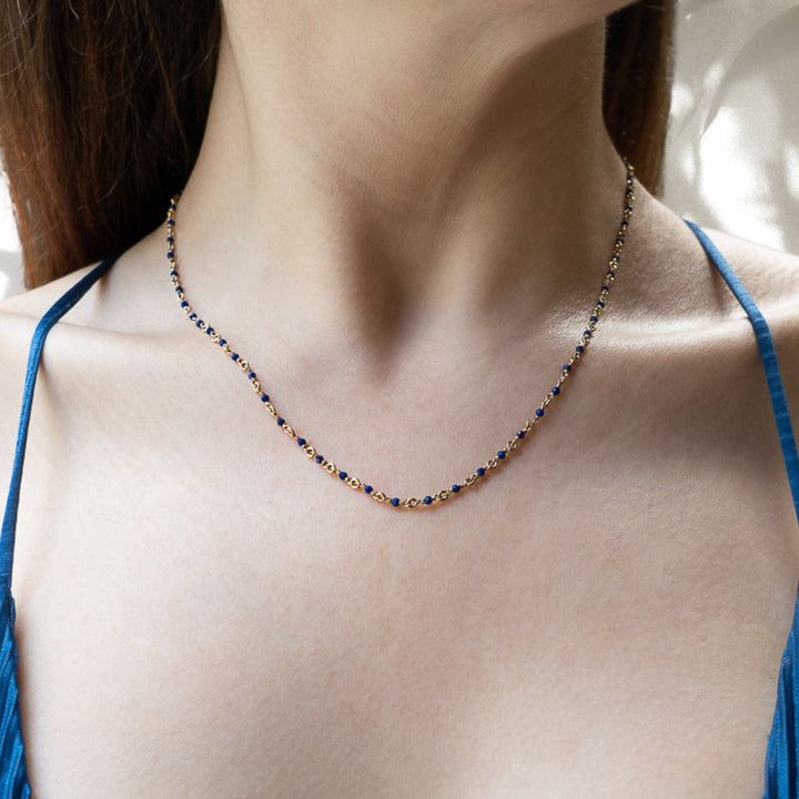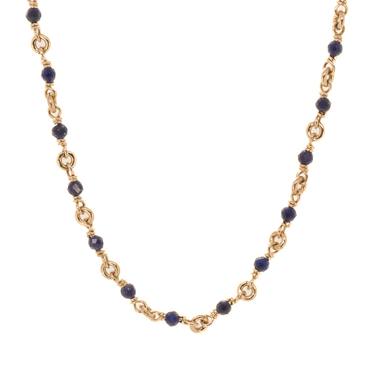 Lapis Lazuli Stone & Solid Gold Chain Necklace - Gold
