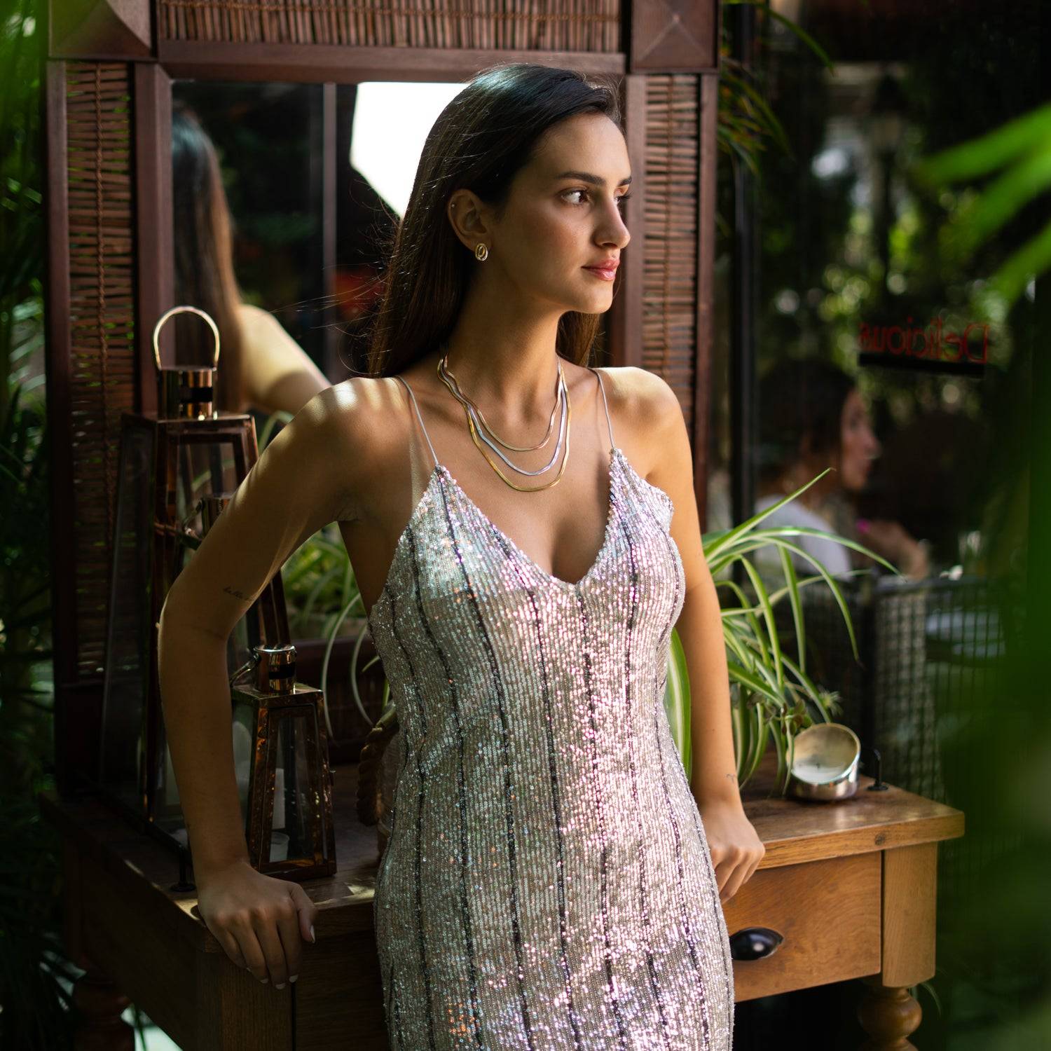 This Trio Glow Layered Italian Chain Necklace by Ebru Jewelry is a modern and versatile accessory that adds instant sophistication to any outfit. The three sleek layers, crafted in gold, silver, and rose tones, create a luminous and stylish effect. This necklace is designed for effortless elegance, whether worn as a standalone statement or layered with other pieces. Its durable, water-resistant material ensures it remains a chic staple for a long time, from day to night.