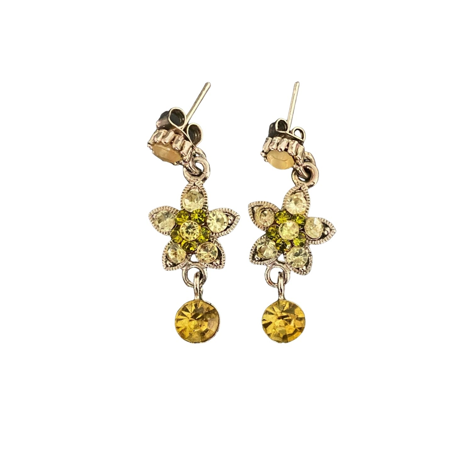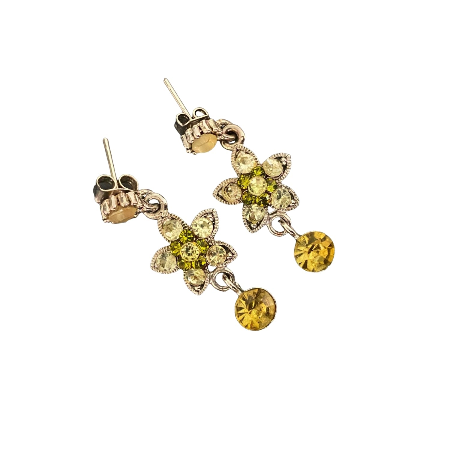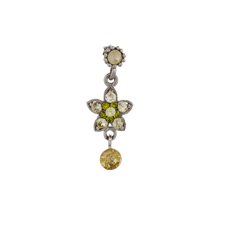 Green Sapphire & Diamond Vintage Floral Silver Earrings - Green