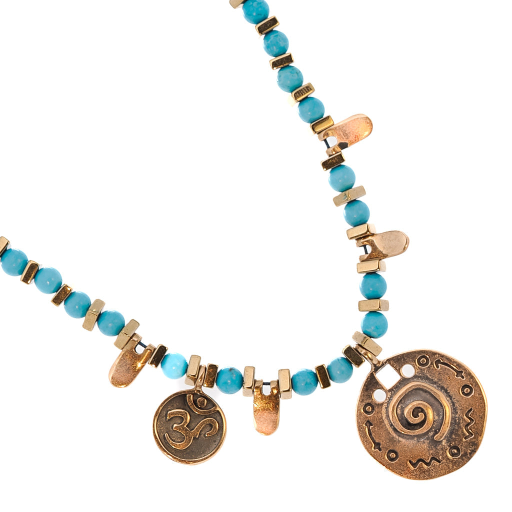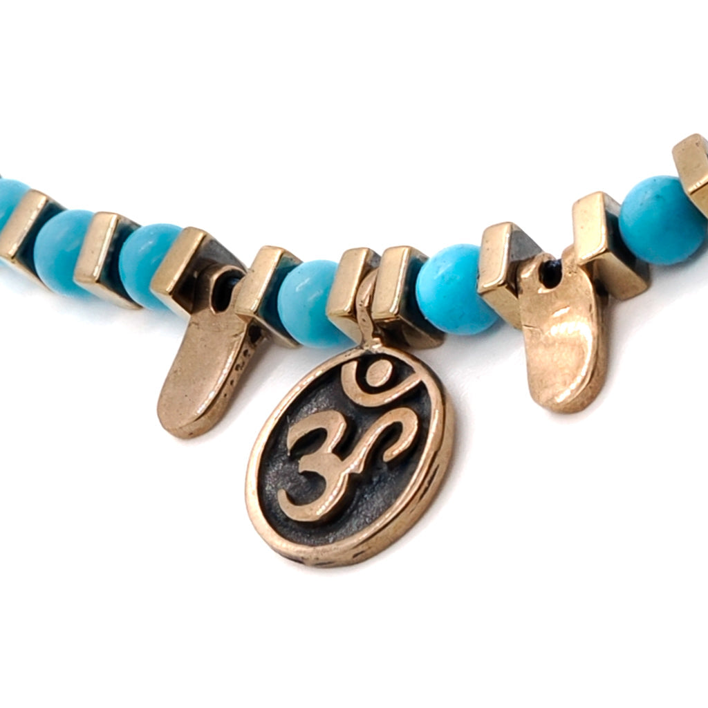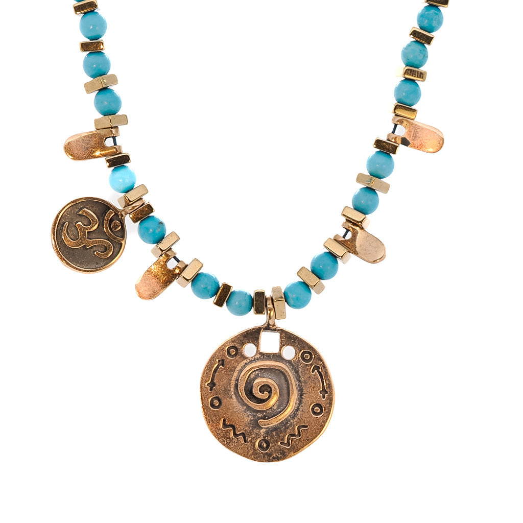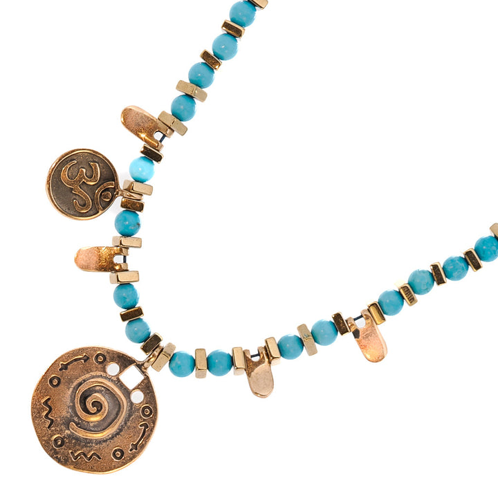 Om & Spiral Charm Turquoise Beaded Choker Necklace - Turquoise