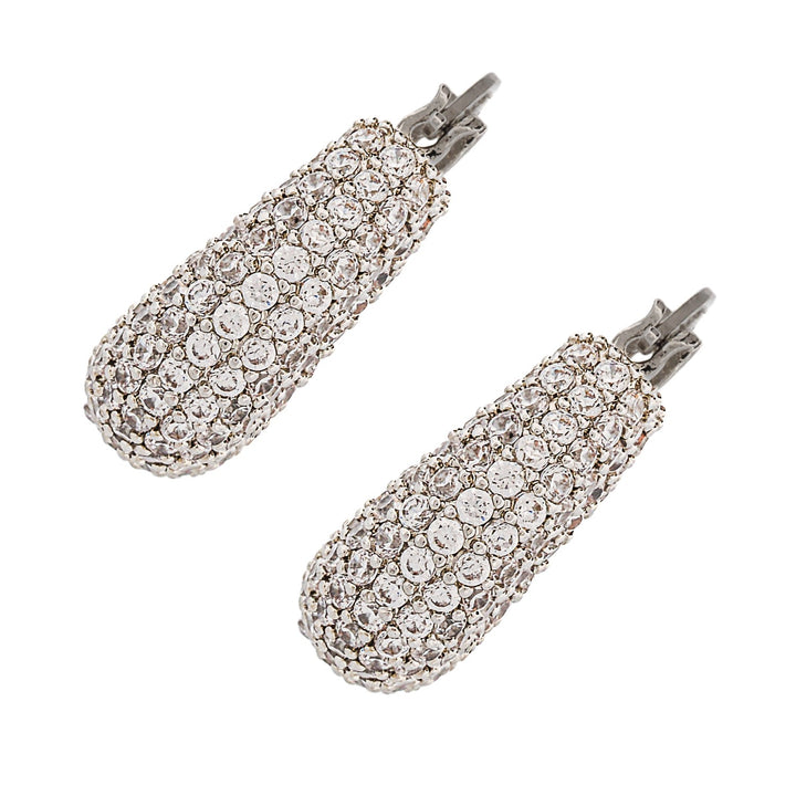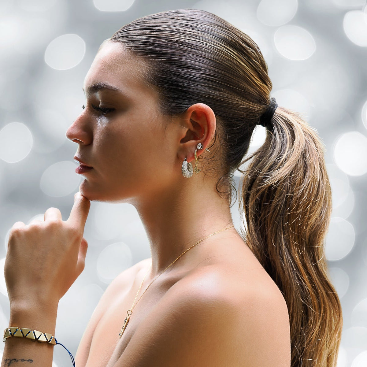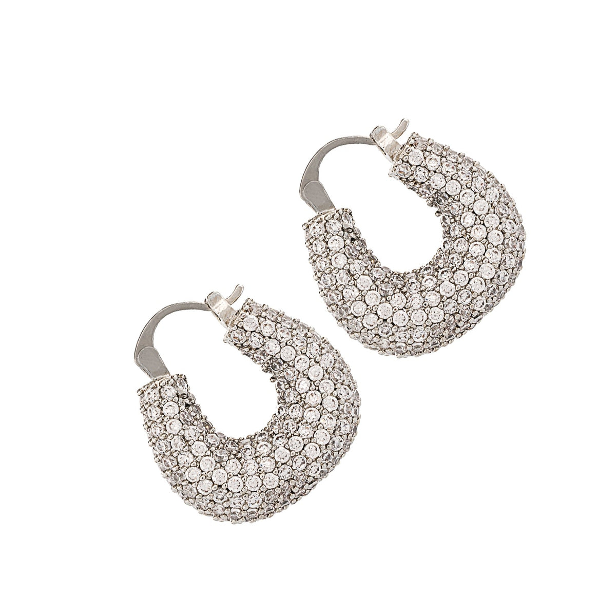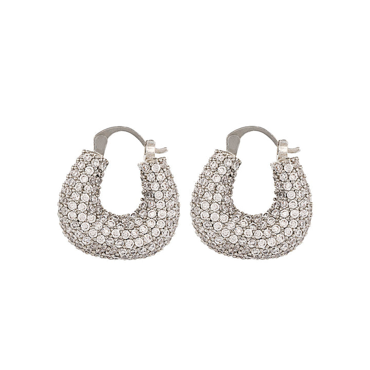 These Sparkly Diamond Silver Fashion Earrings by Ebru Jewelry are an embodiment of celestial beauty and timeless sophistication. The meticulous arrangement of cubic zirconia pave diamonds captures and reflects light in a mesmerizing dance of sparkle and brilliance. These huggie earrings are an expression of unique taste and a timeless accessory for any occasion.