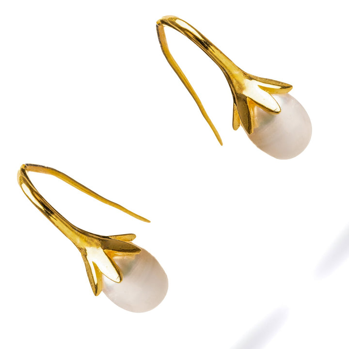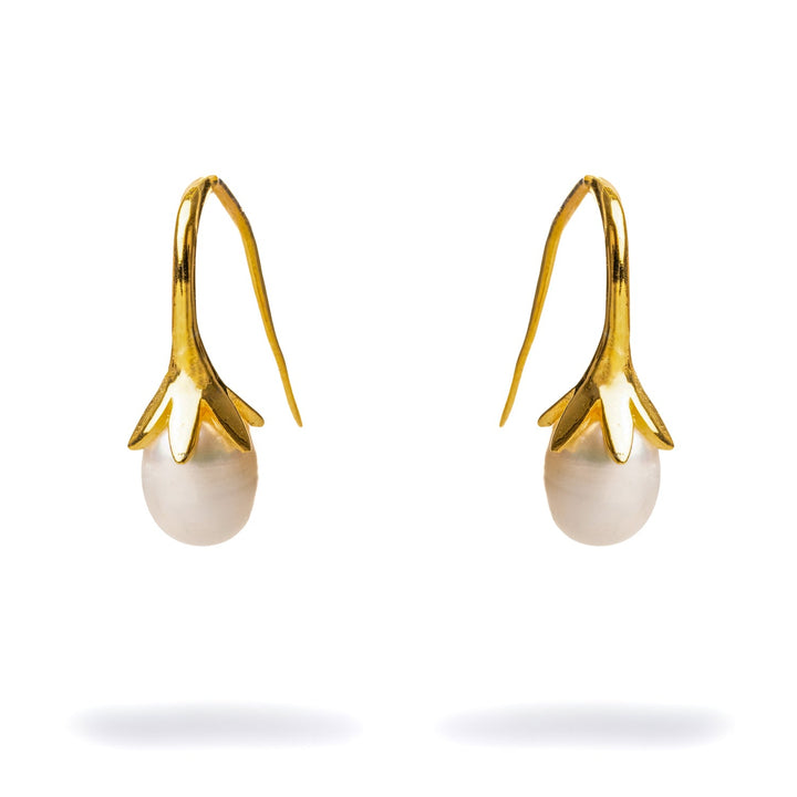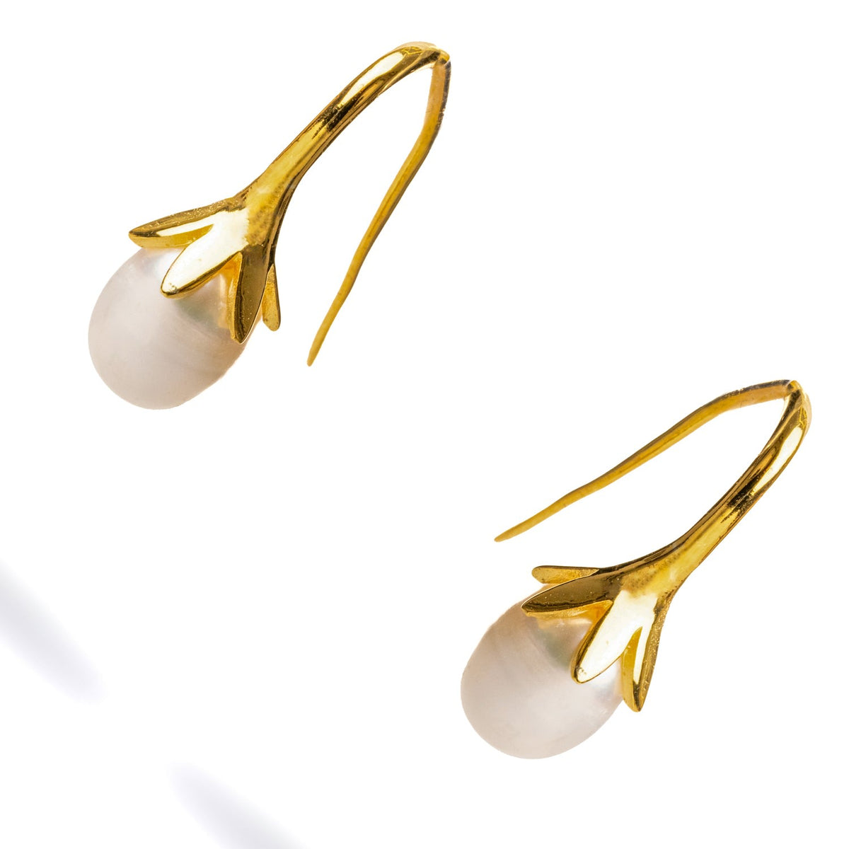 Dainty Gold Vermeil & Pearl Design Statement Earrings - White