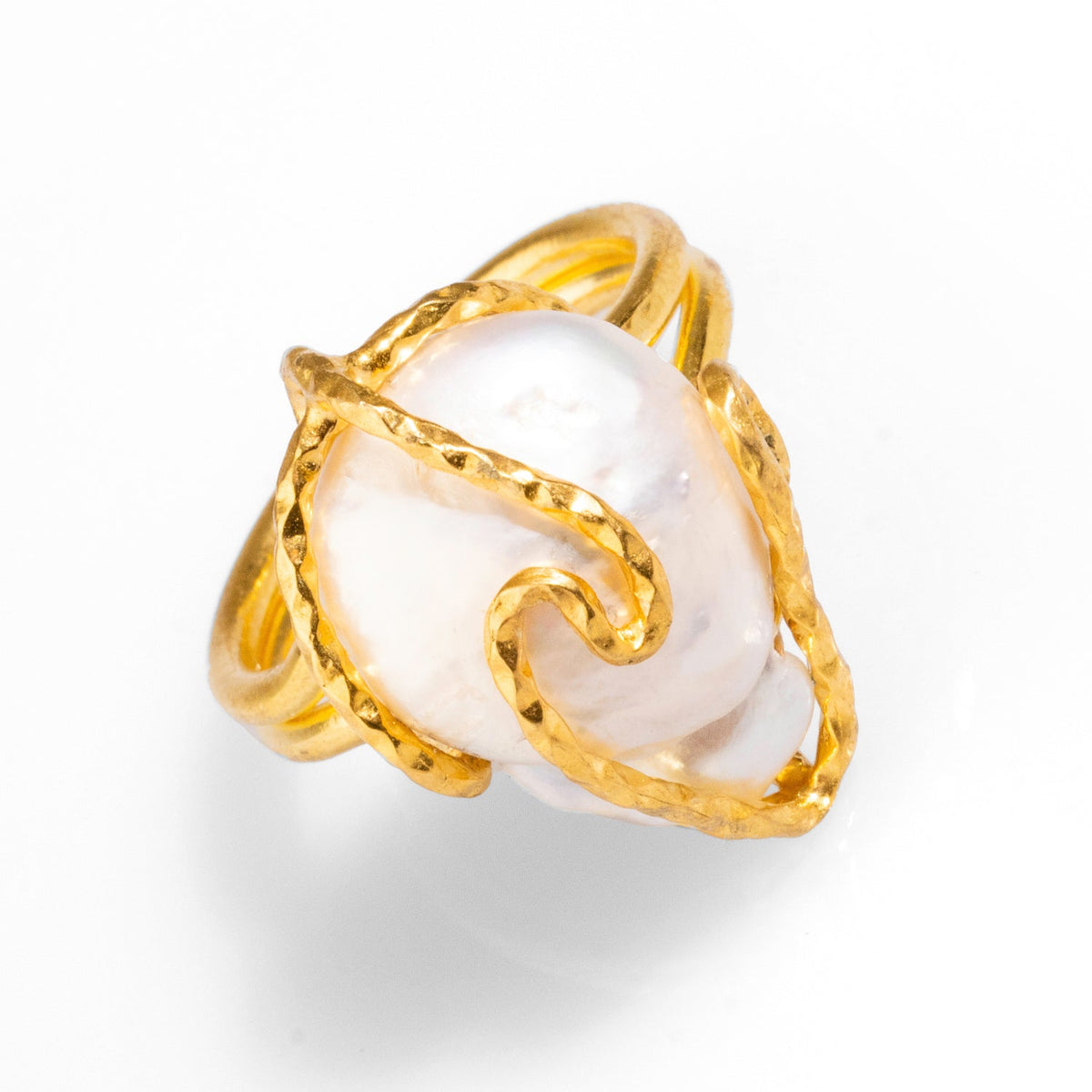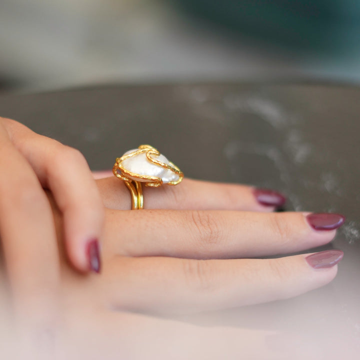 Baroque Pearl Gold Design Isis Chunky Ring - White