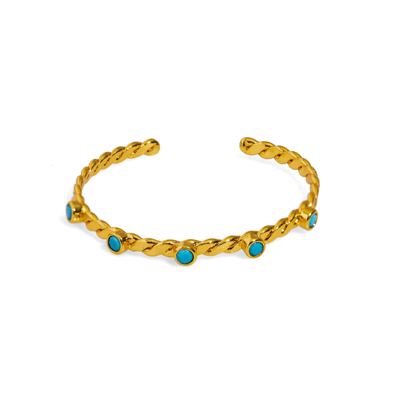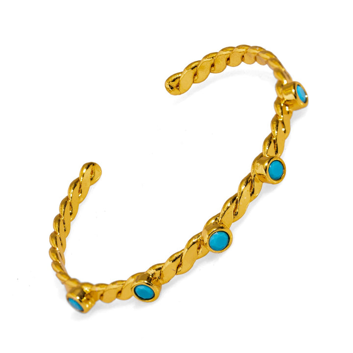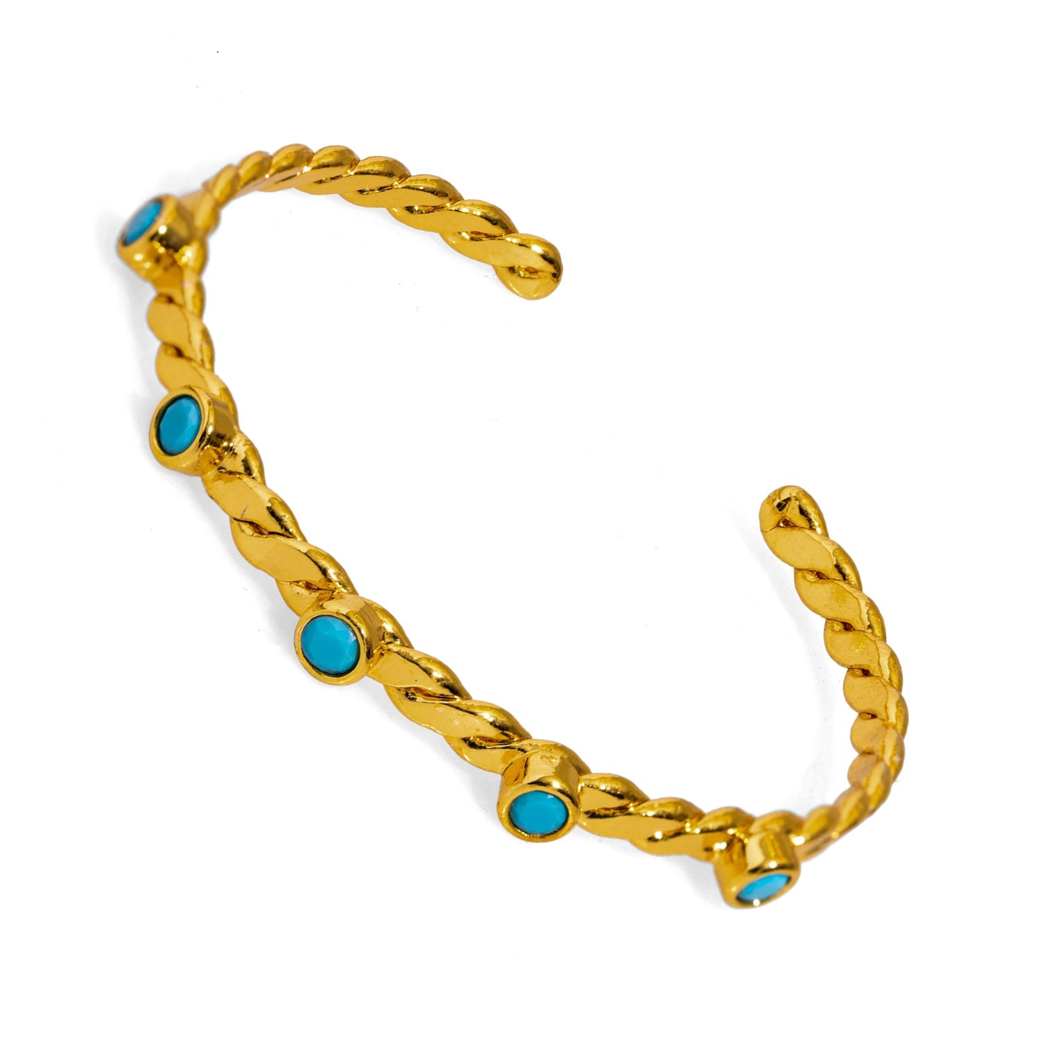 Twisted Turquoise & Gold Dainty Cuff Bracelet - Turquoise