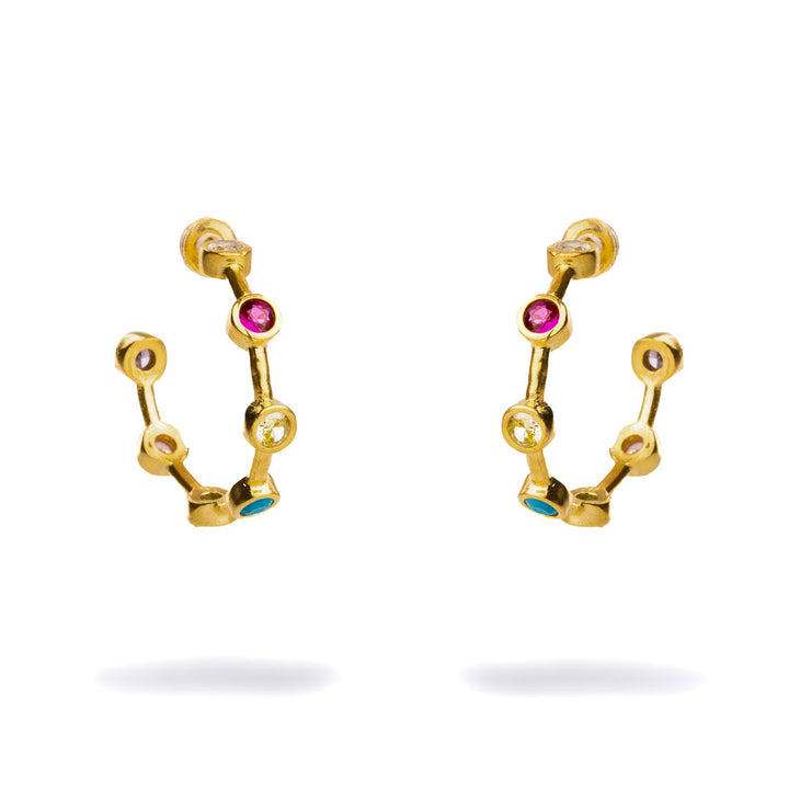 Multi Gemstone Gold Hoop Joy Earrings - Multicolor