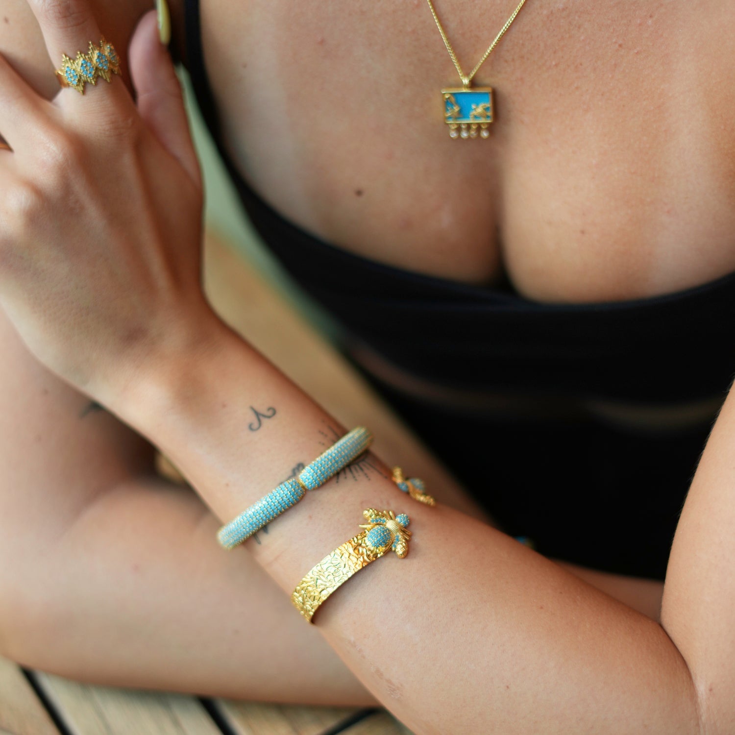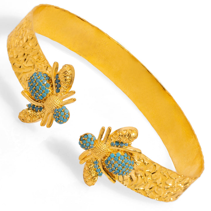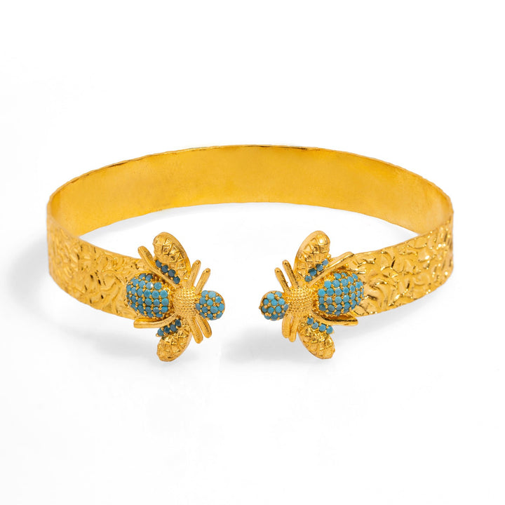 Mystic Design Gold & Turquoise Honey Bee Cuff Bracelet - Gold