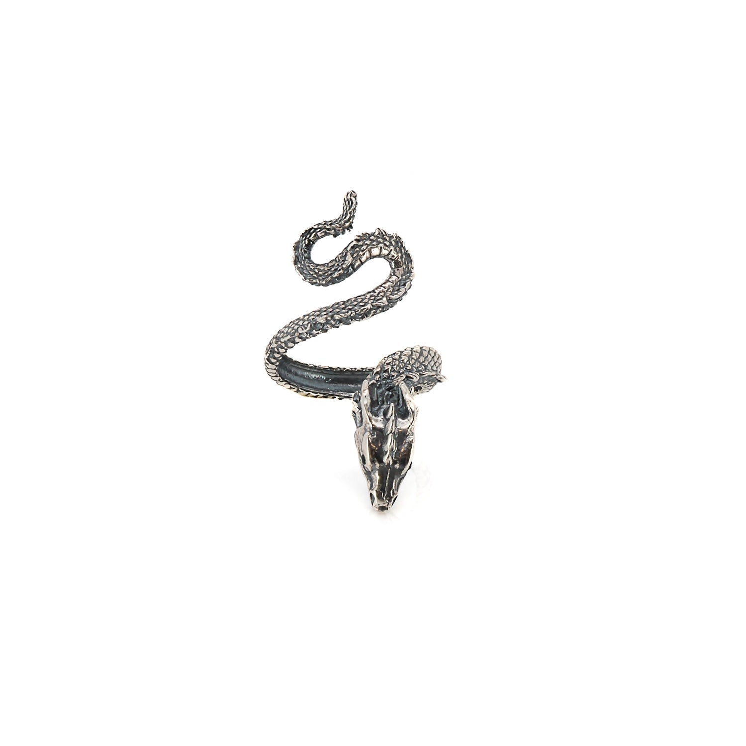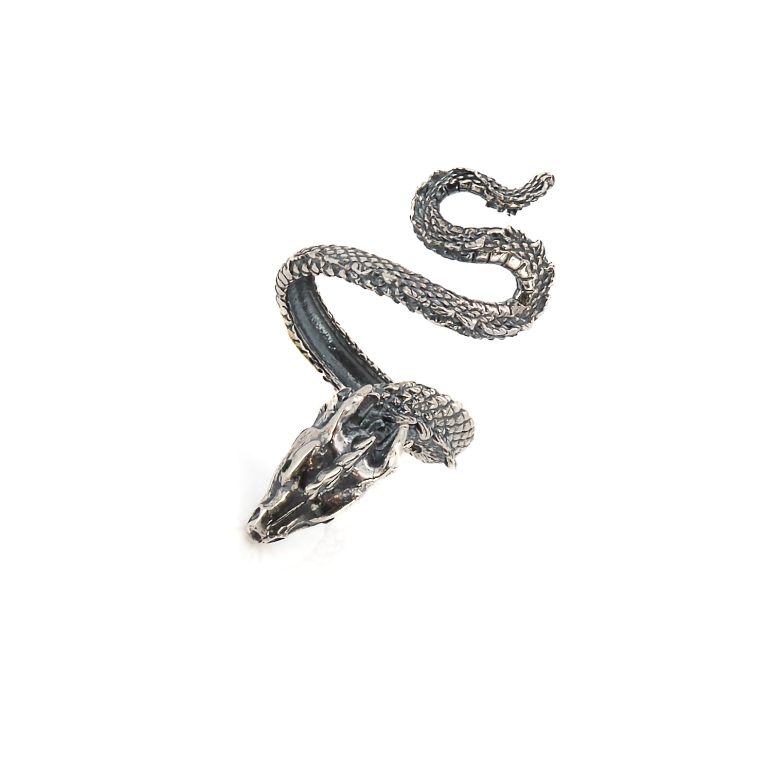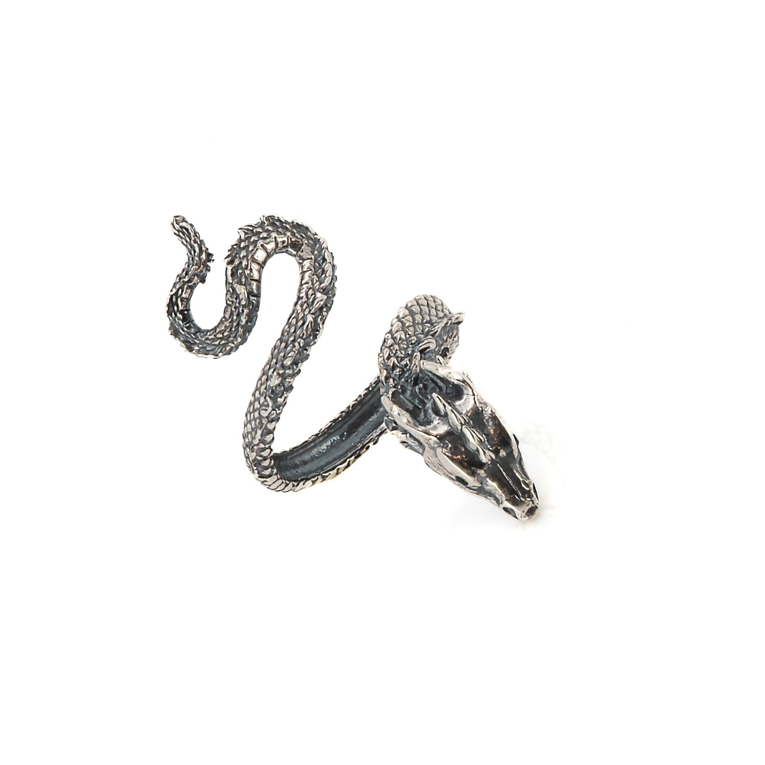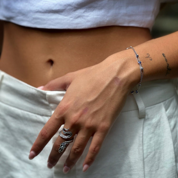 This Sterling Silver Rebirth Snake Ring by Ebru Jewelry is a remarkable piece that blends elegance with powerful symbolism. The sinuous snake, revered for representing transformation and rebirth, is meticulously crafted from 925 sterling silver. Two mesmerizing green emerald stones are set as the snake's eyes, making this ring a potent representation of growth and empowerment every time you wear it.
