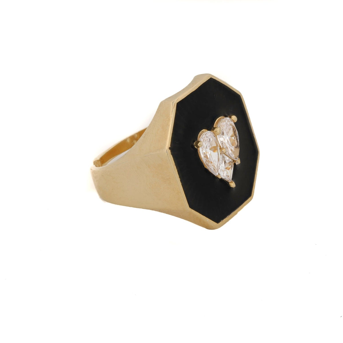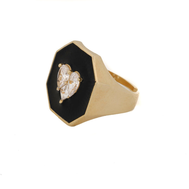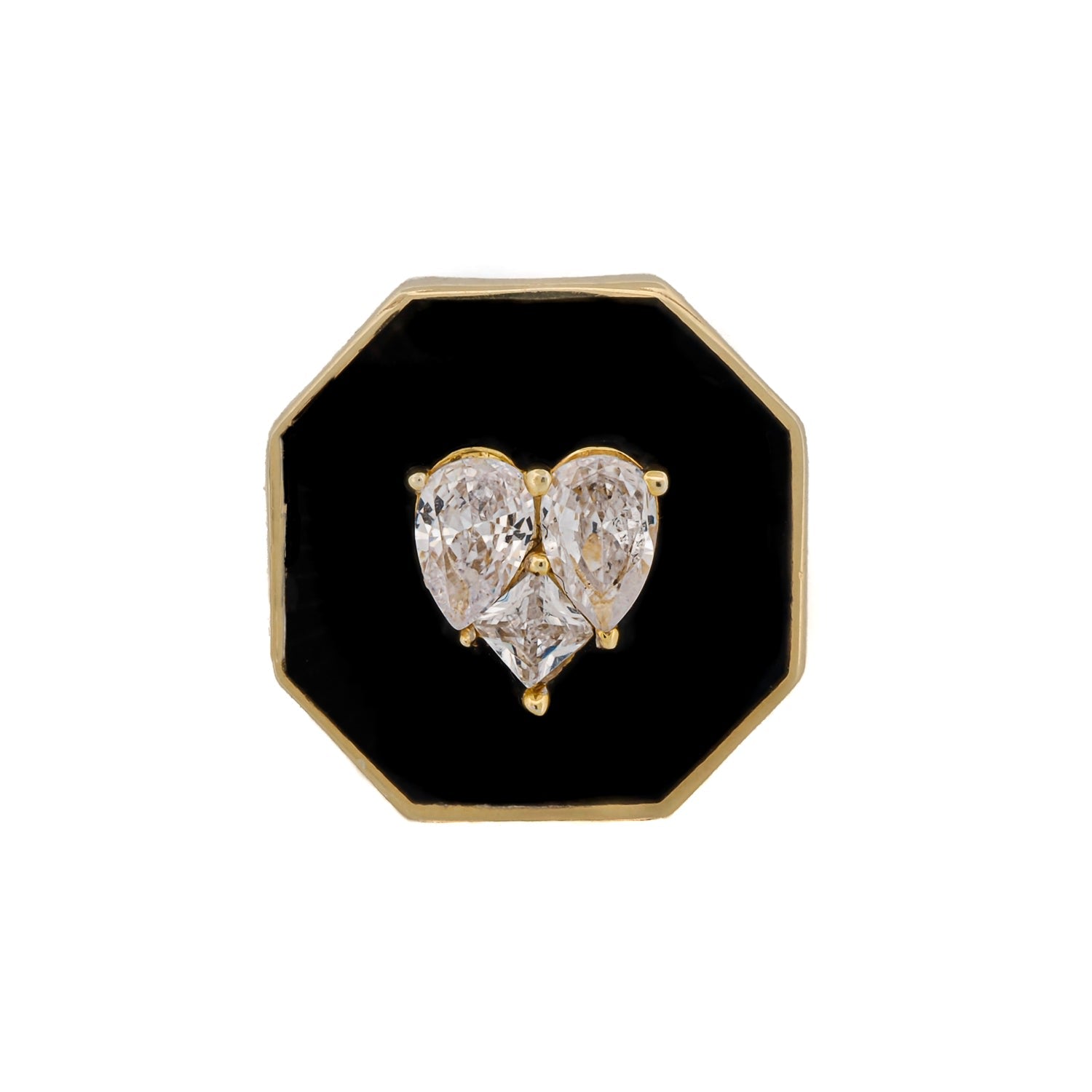 Magical Love Black Enamel Diamond Heart Adjustable Statement Ring - Black