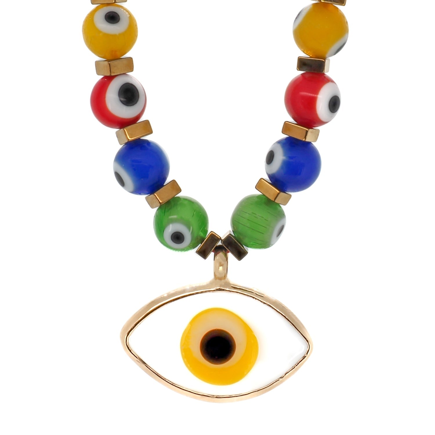 Positive Vibration Yellow Evil Eye Pendant Necklace - Multicolor