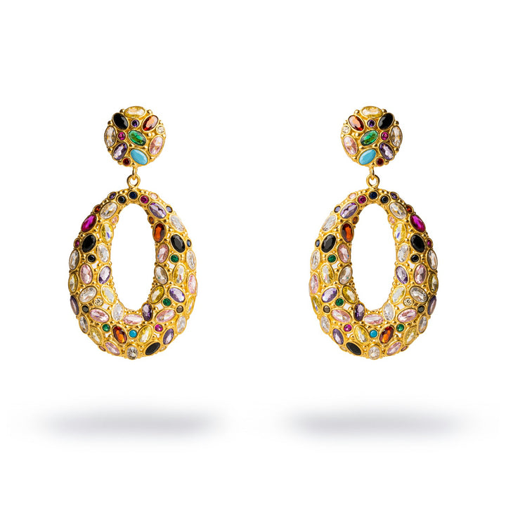Multi Gemstone & Gold Stylish Look Chunky Dangle Earrings - Multicolor