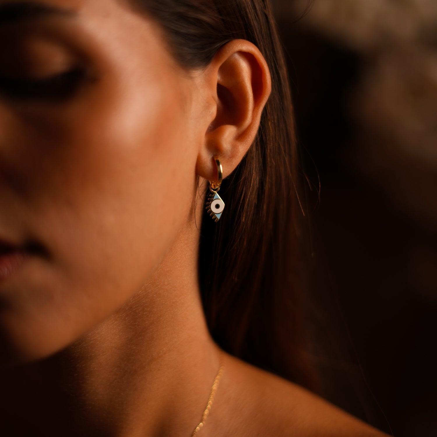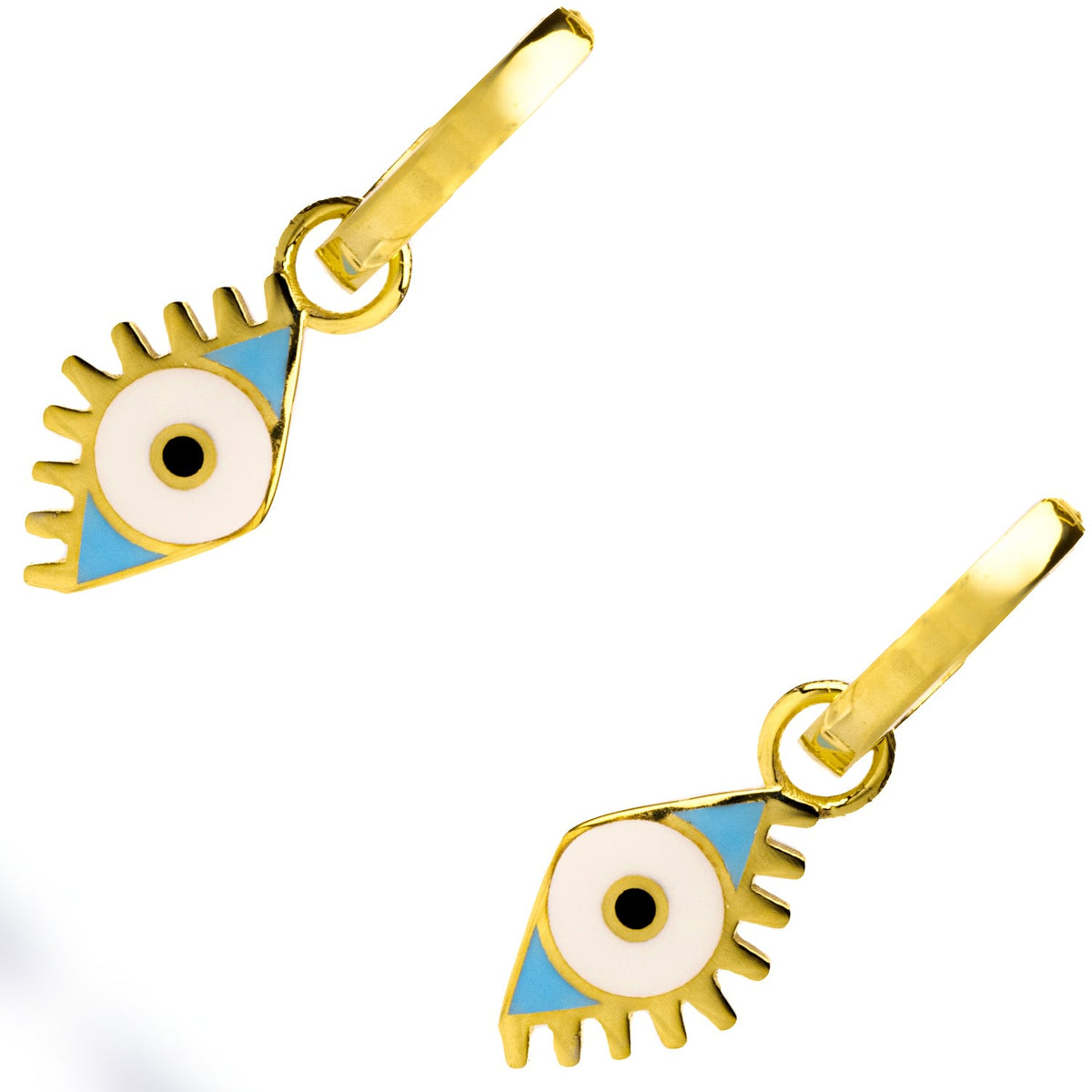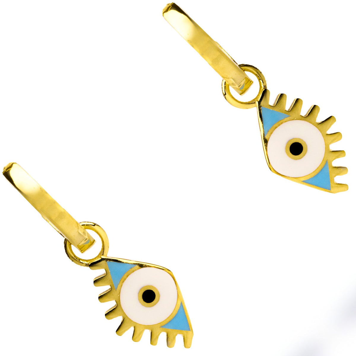 Gold Vermeil Hoop & Blue Enamel Protection Evil Eye Dangle Earrings - Blue