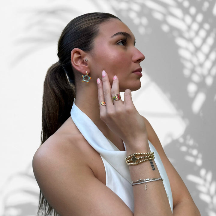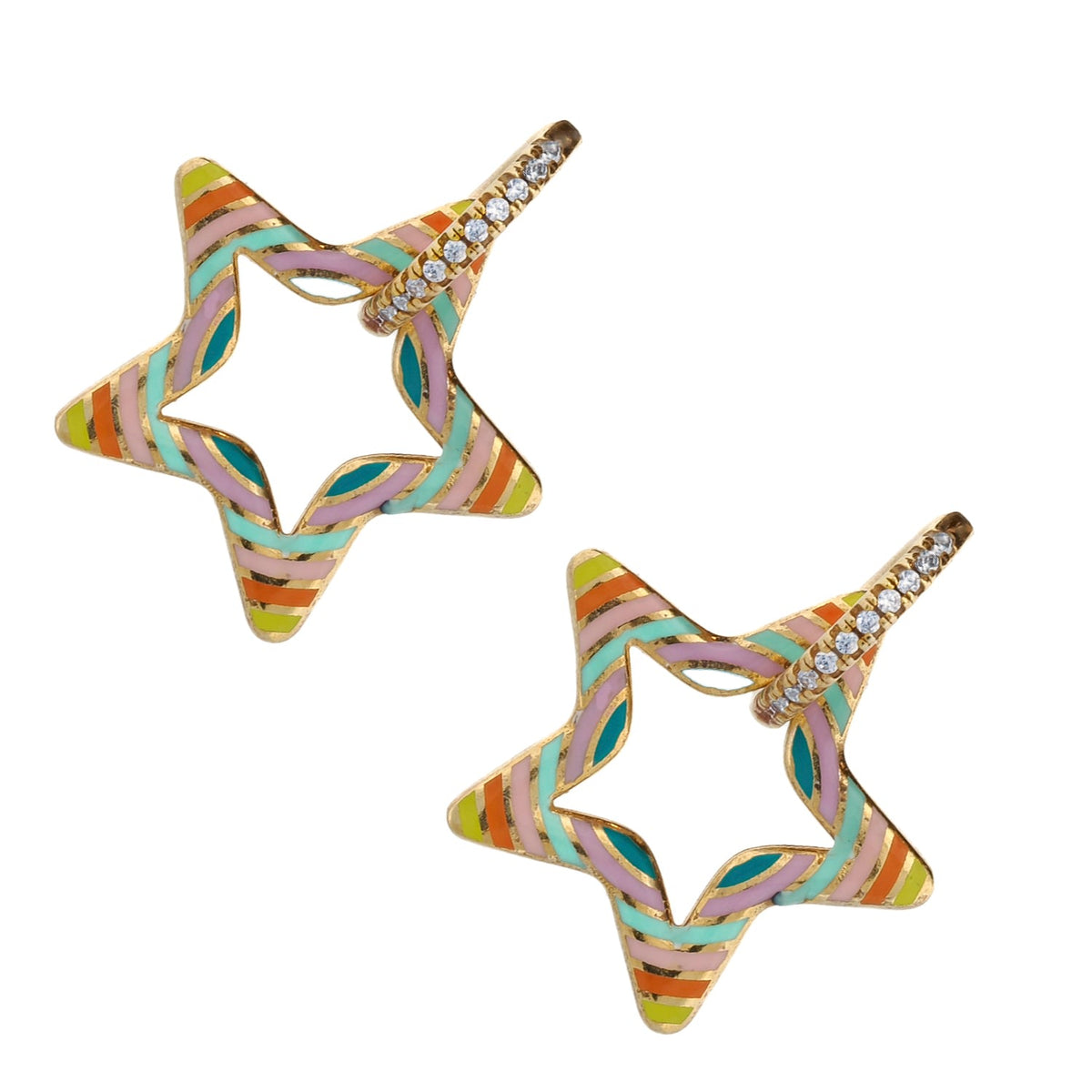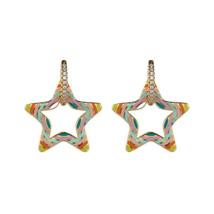 Pastel Colors Star Diamond Hoop Gold Earrings - Gold