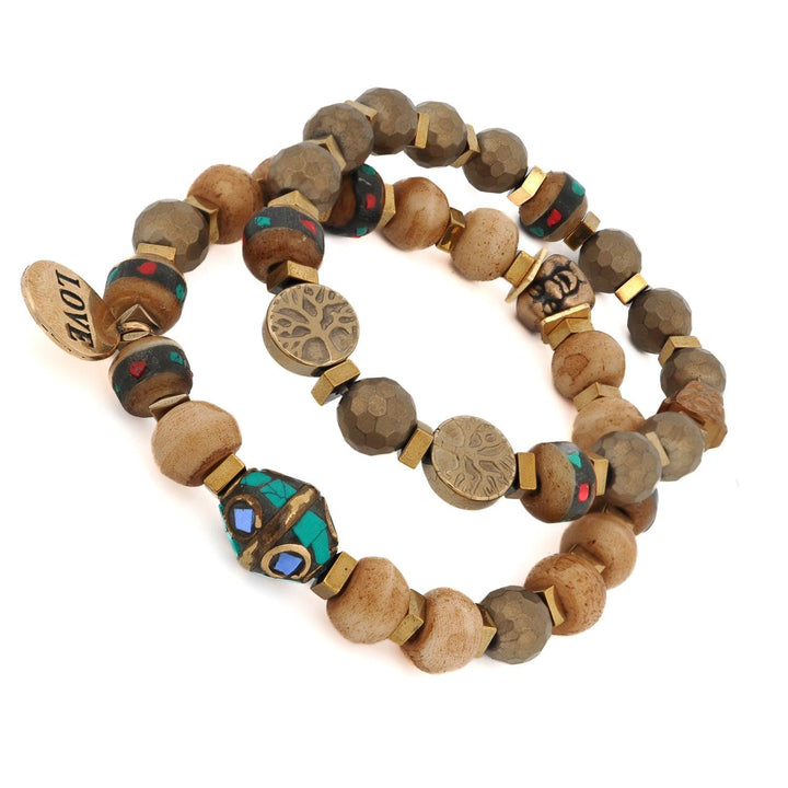 Boho Soul Nepal Meditation & Buddha Bead Bracelet Set - Brown