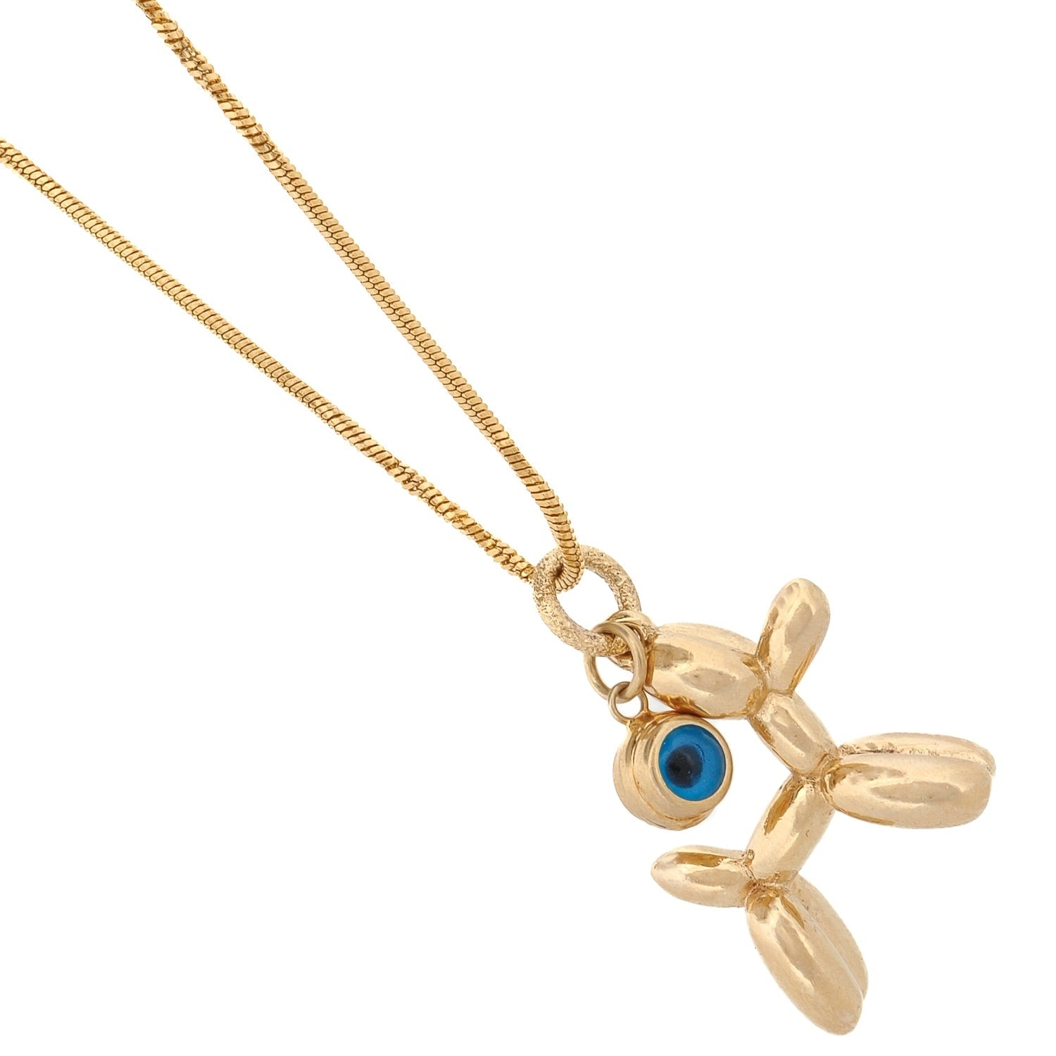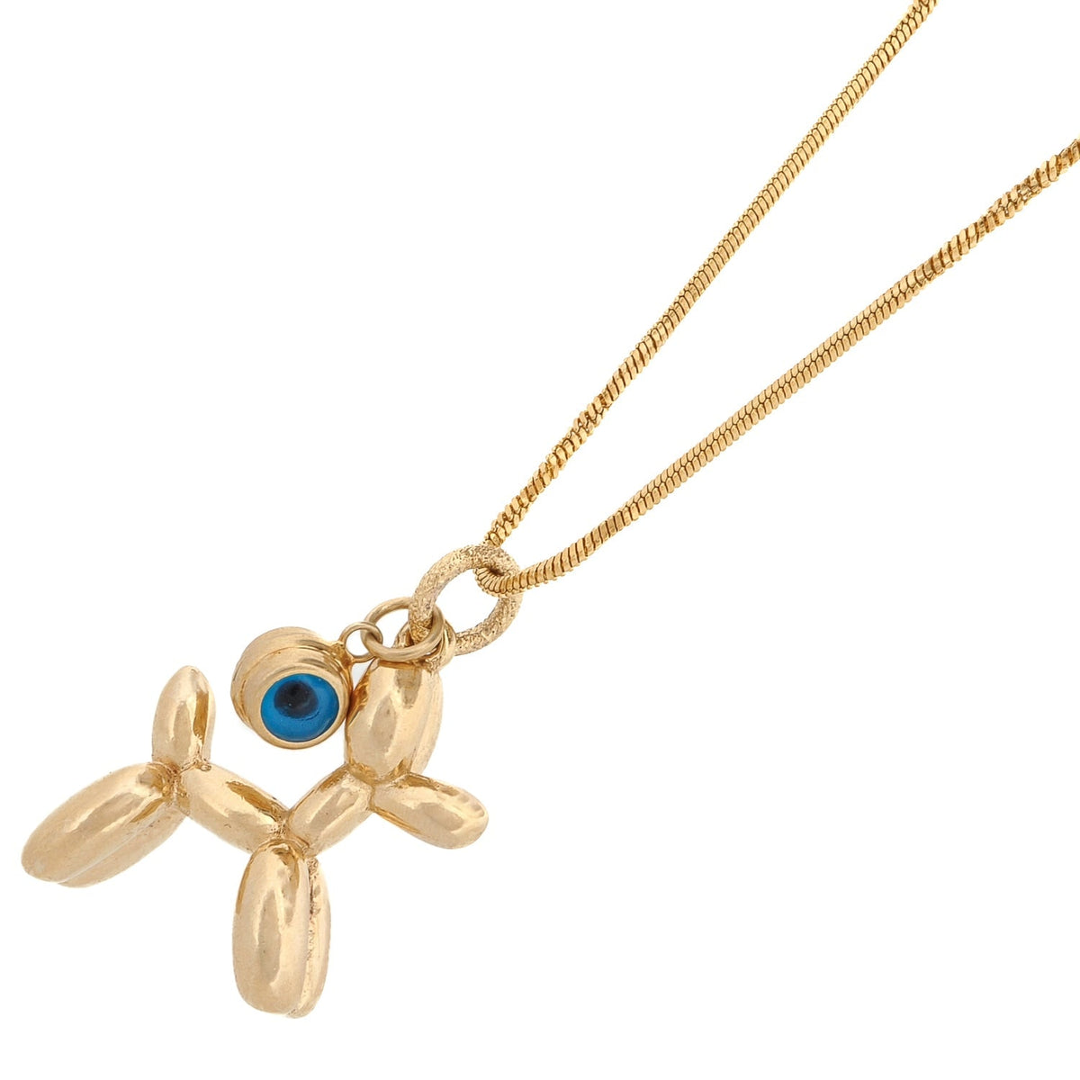 Puppy Luck Balloon Dog & Evil Eye Gold Necklace - Gold